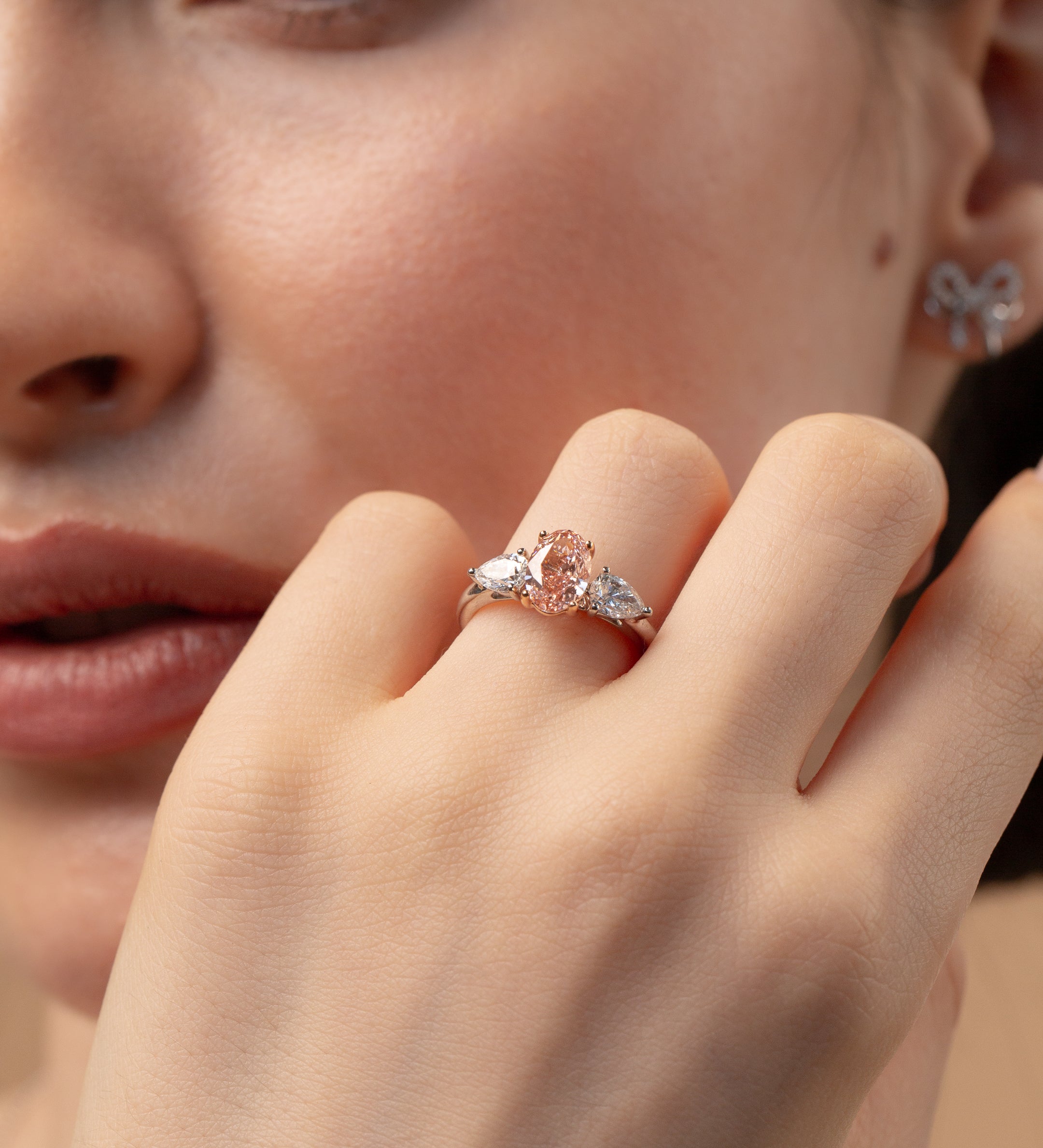Model with flower with engagement ring