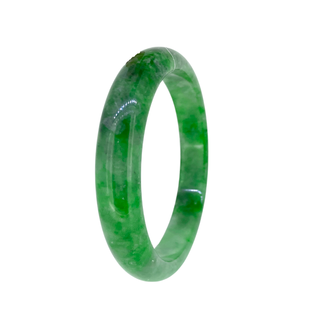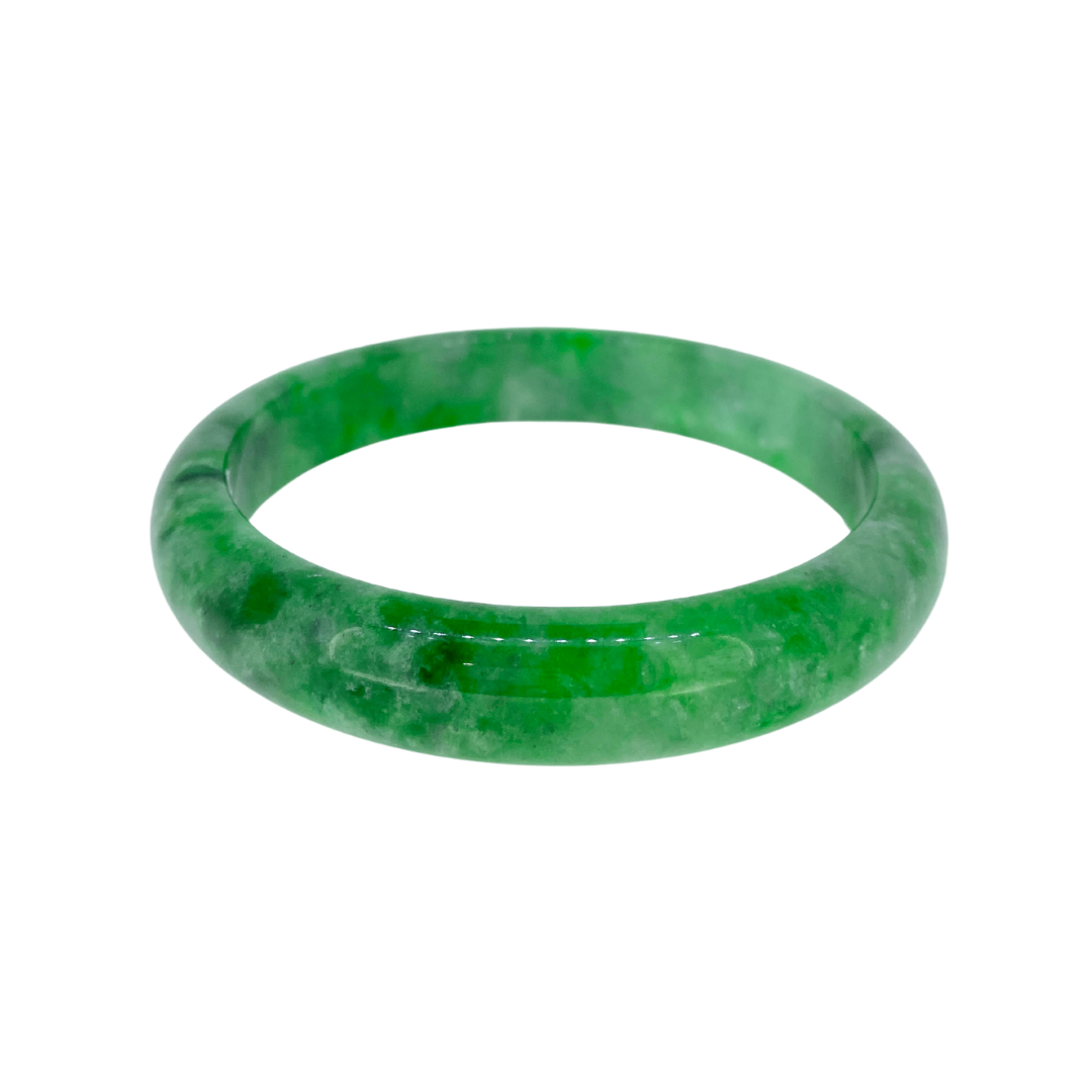 Our jade bangle collection features natural Burmese jadeite jade, with each piece being entirely unique. Every bangle is available only in the specific size listed, reflecting its one of a kind nature. Wearing a jade bangle is traditionally believed to promote balance, harmony, and protection, making it more than just a stunning accessory, but a meaningful part of your everyday wear.