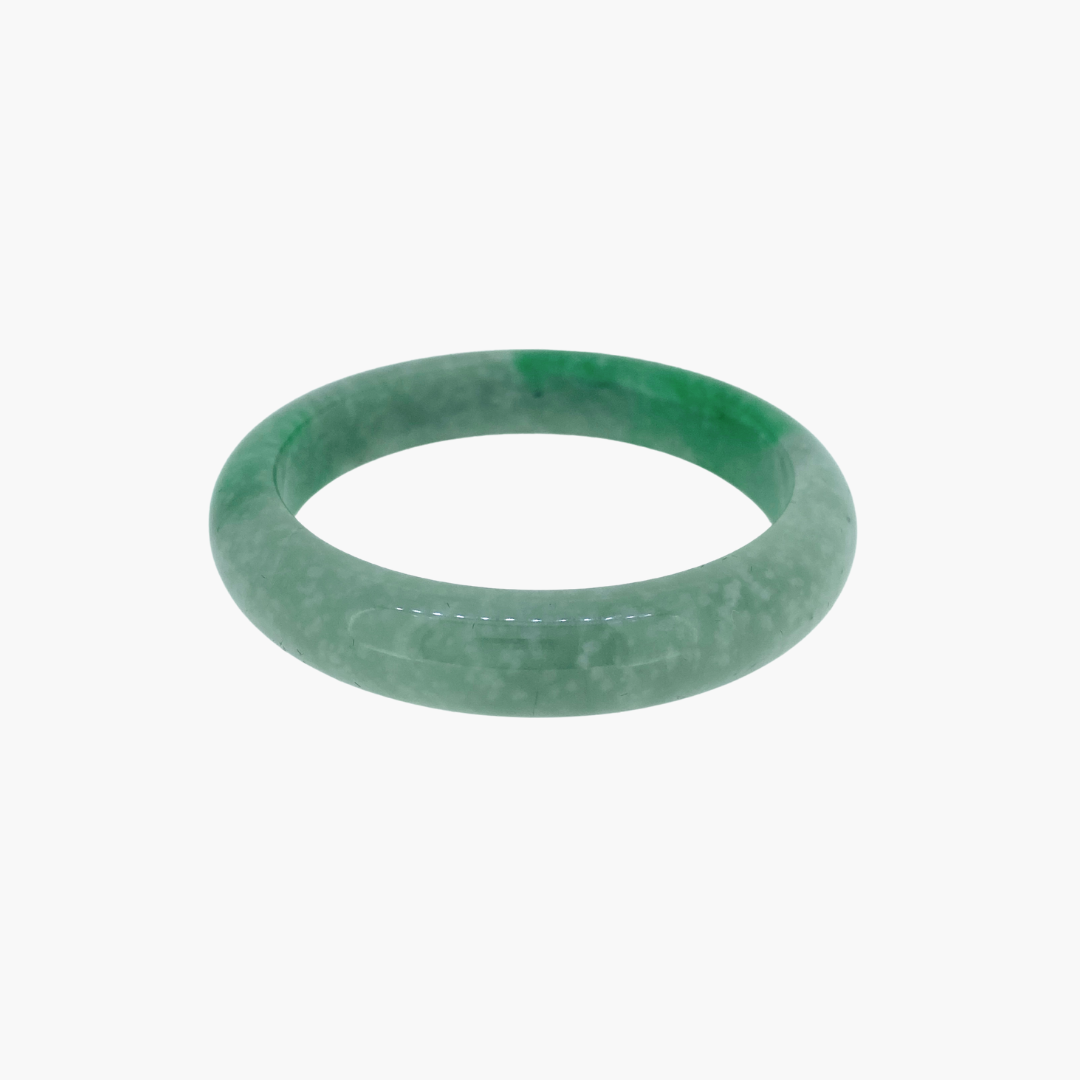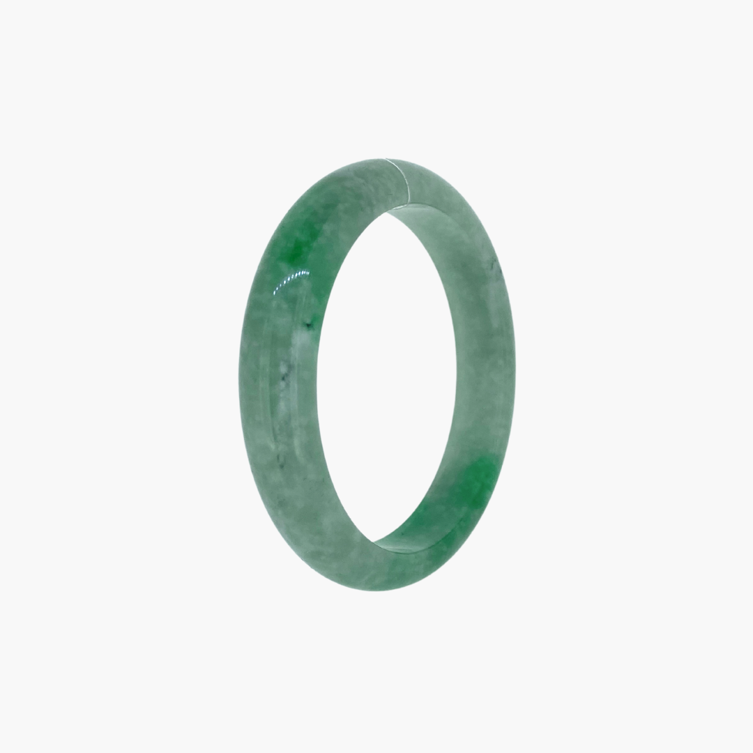 This jade bangle shines with vibrant bright-green tones that bring energy and freshness to the piece. Its lively colour accents stand out against the natural jade base, creating a look that feels youthful, uplifting, and full of good fortune. A perfect choice for someone who loves jade with a bold, radiant touch.