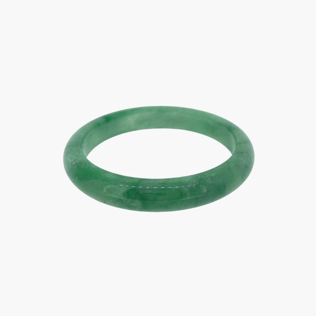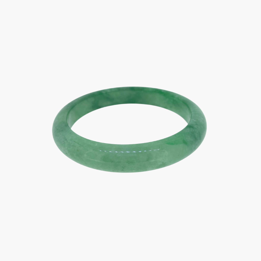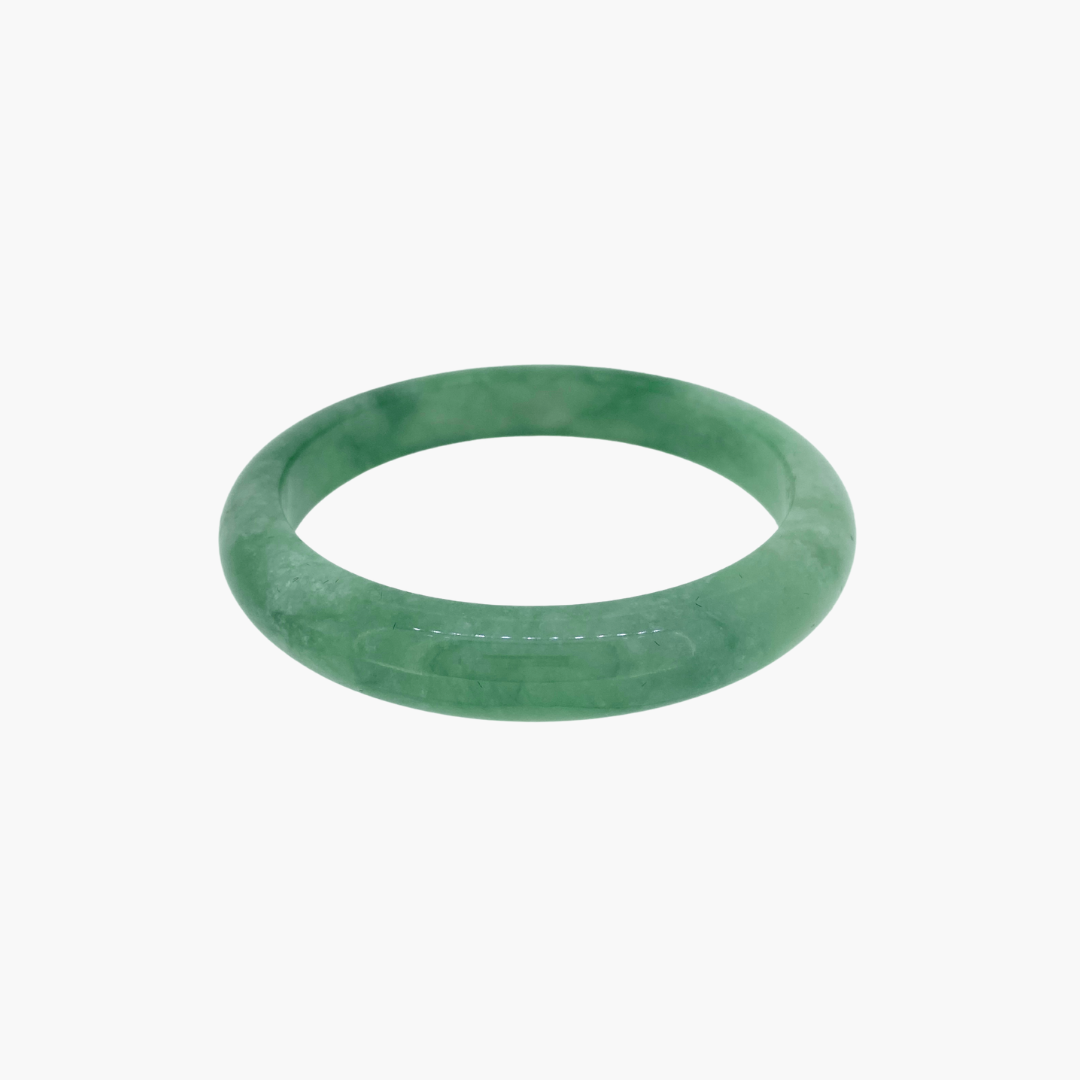 This jade bangle blends deep forest greens with soft, lighter tones, creating a beautiful natural gradient throughout the stone. The mix of shades gives the piece depth, character, and a harmonious look — perfect for someone who appreciates jade with dimension and a touch of contrast.