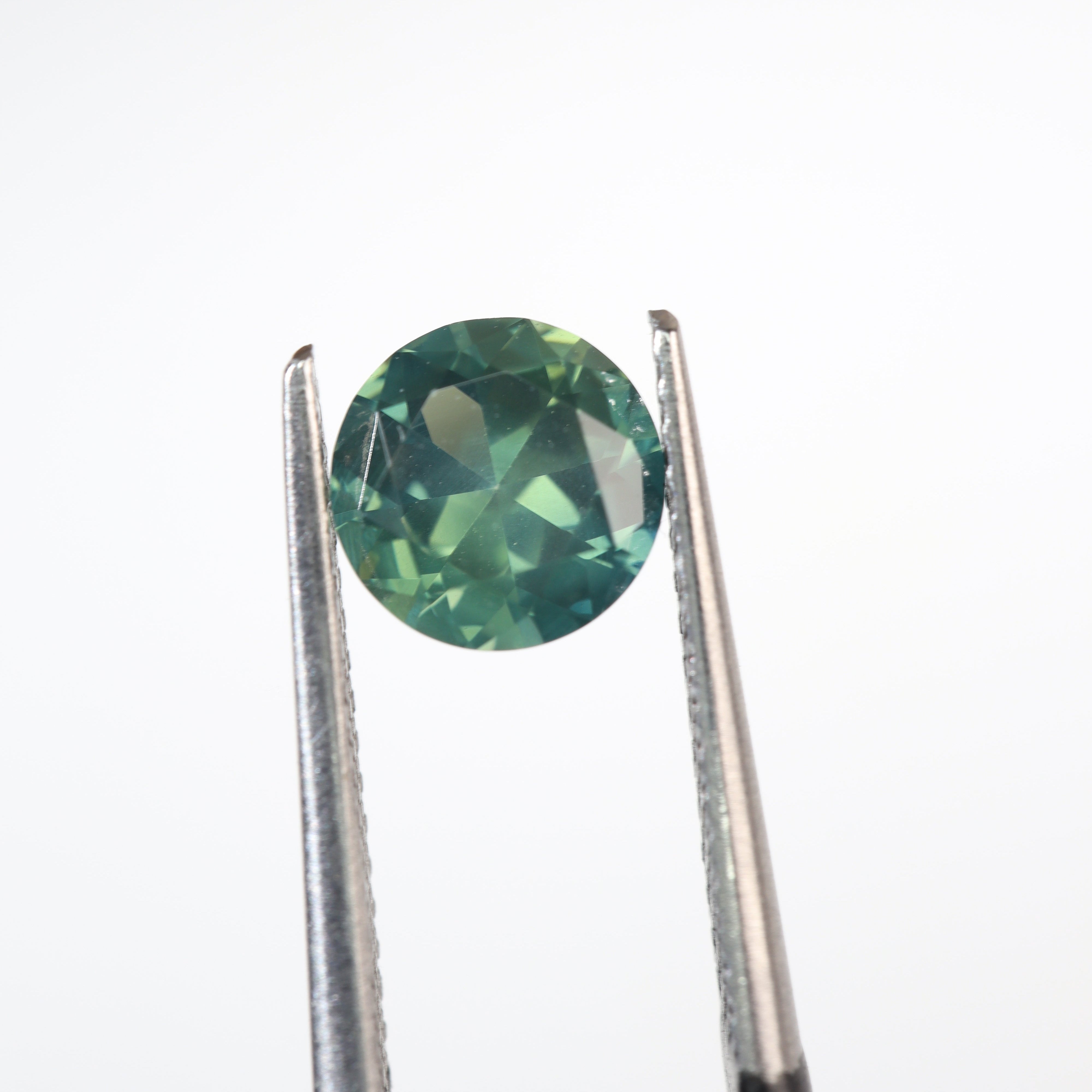 This 1.00ct round Australian sapphire features a silky green teal tone, giving it a soft, almost glowing character under the light. The round brilliant cut enhances its lively sparkle and symmetry, while its eye‑clean clarity and natural, unheated origin make it a beautiful choice for a custom engagement ring or signature jewellery piece.