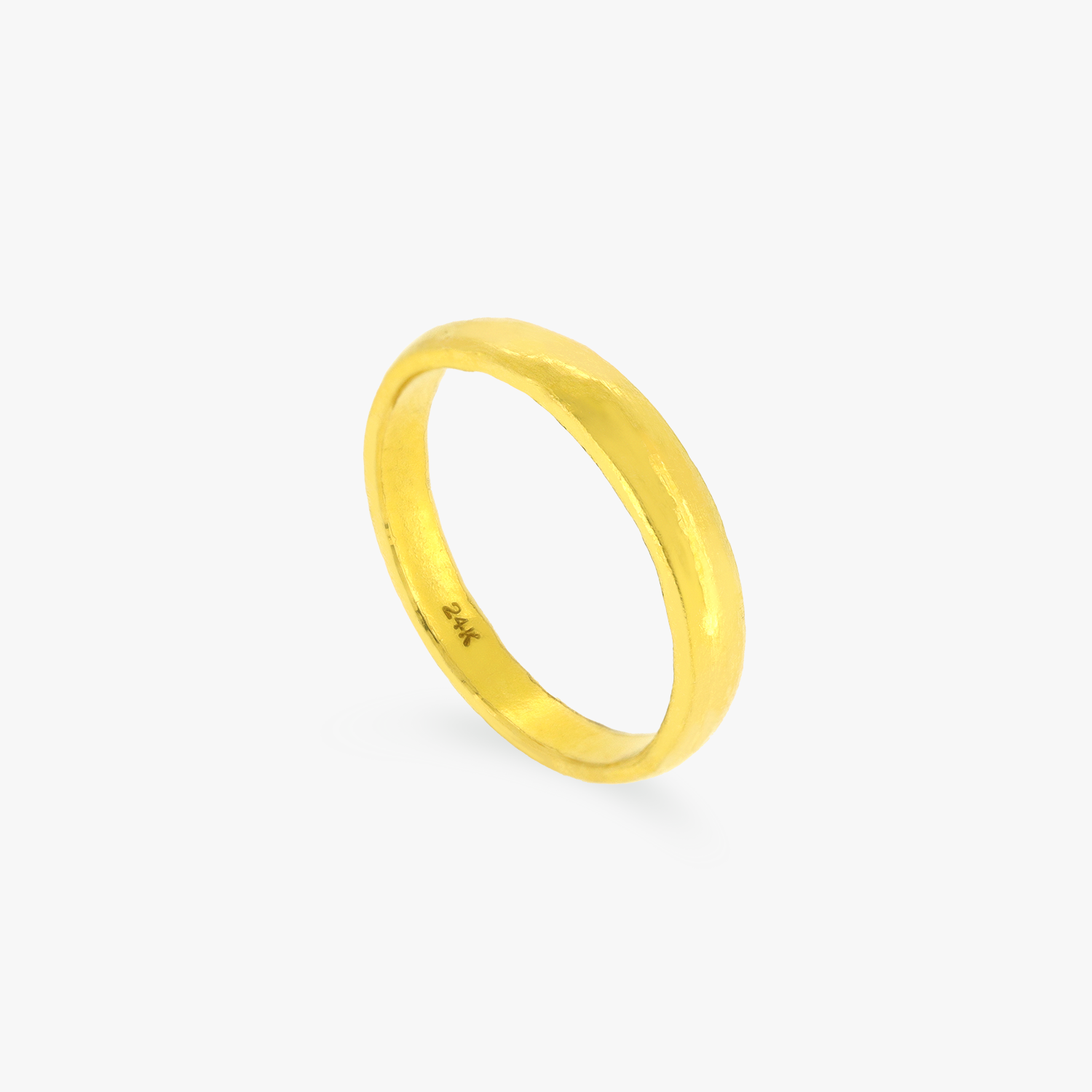 This plain band crafted from 5.5grams of 24K yellow gold is perfect as a standalone piece or paired with other accessories. Its simple aesthetic is sure to be a timeless design that will never go out of style.