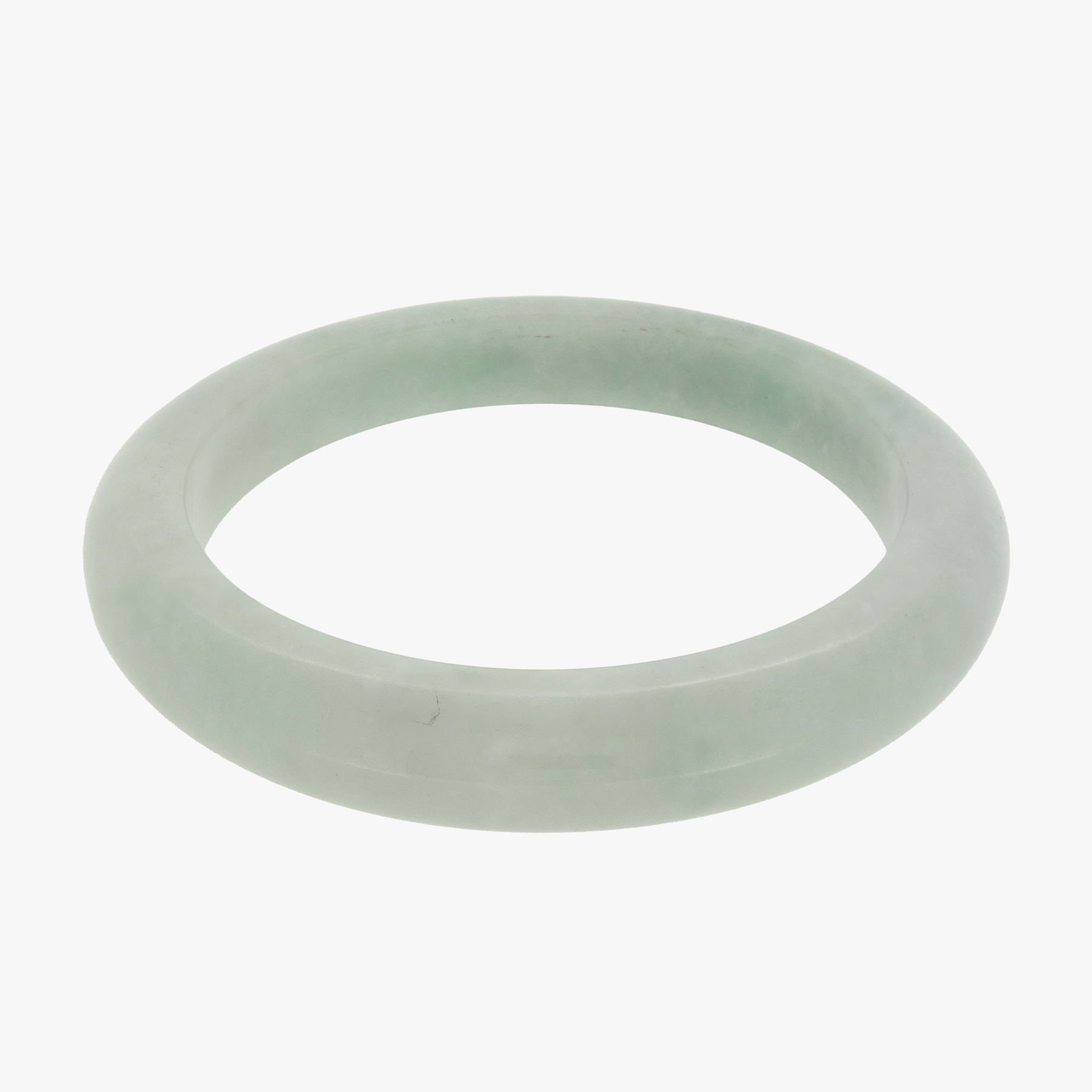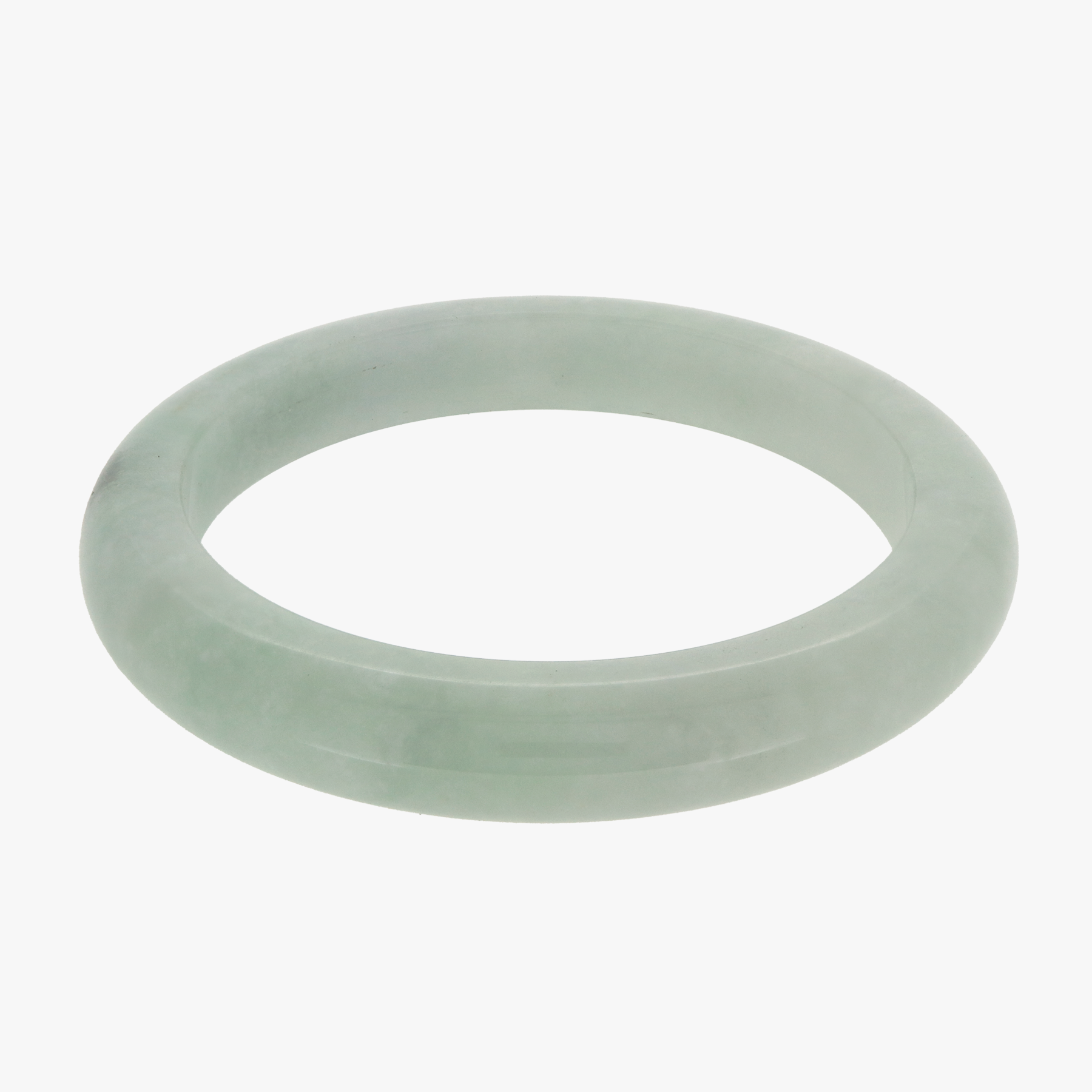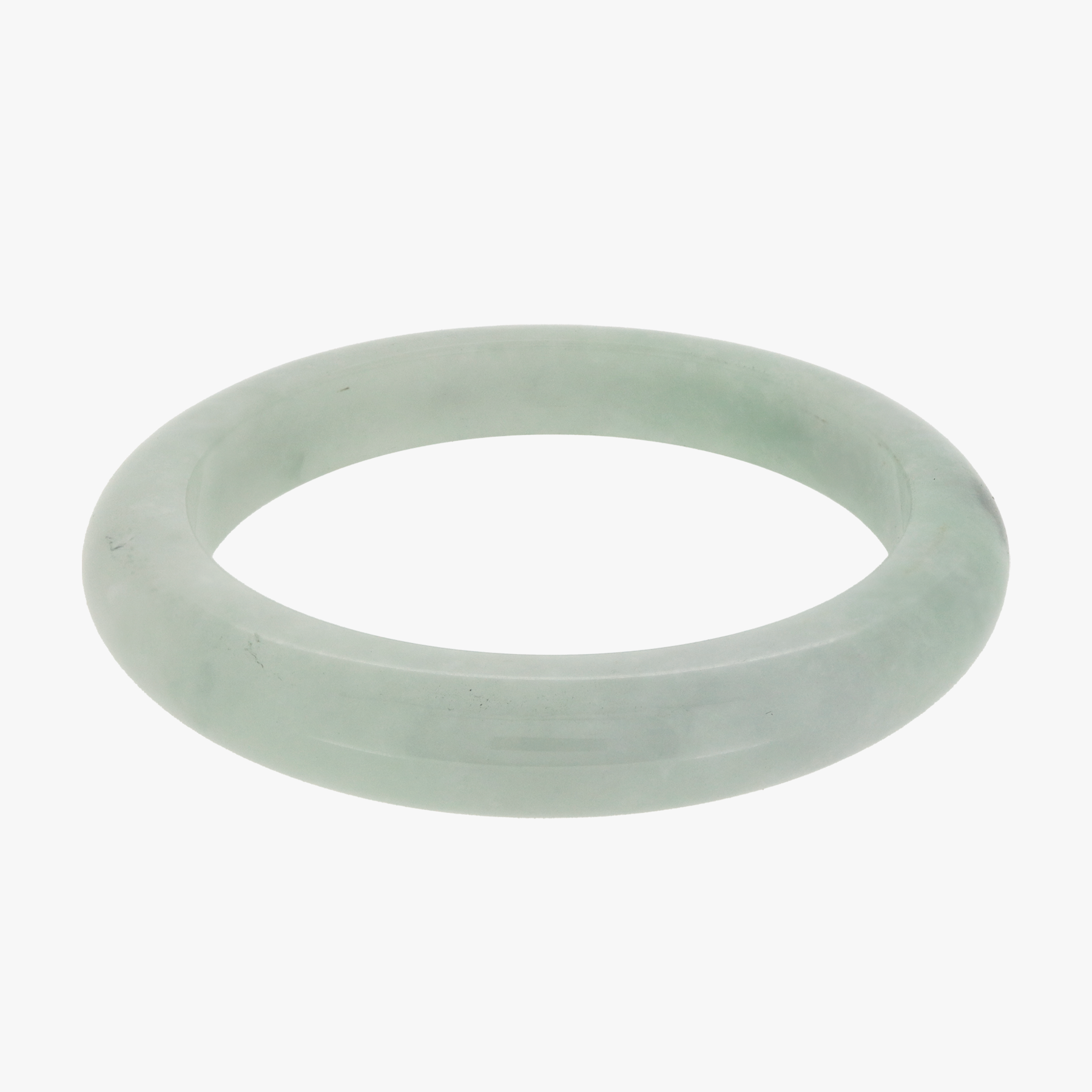 From our Grade A jade series featuring high quality, untreated natural Burmese Jade comes our Clover Jade Bangle. A thinner half-round jade bangle with a light muted green colour that has a dark grey beauty mark. Our Clover bangle produces a pleasant sound.