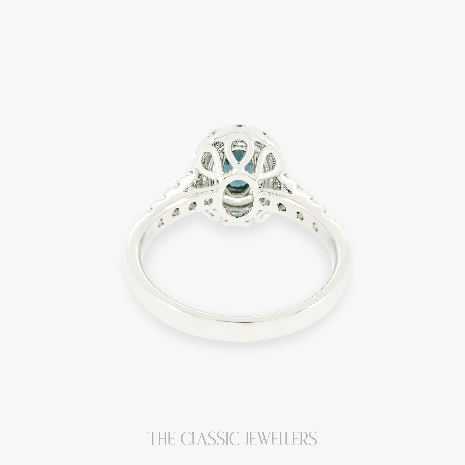 • Stones - 1.23ct Oval Cut Natural Parti Sapphire | 20 Brilliant Round Natural Diamonds 0.60ct, G/H Colour, SI Clarity