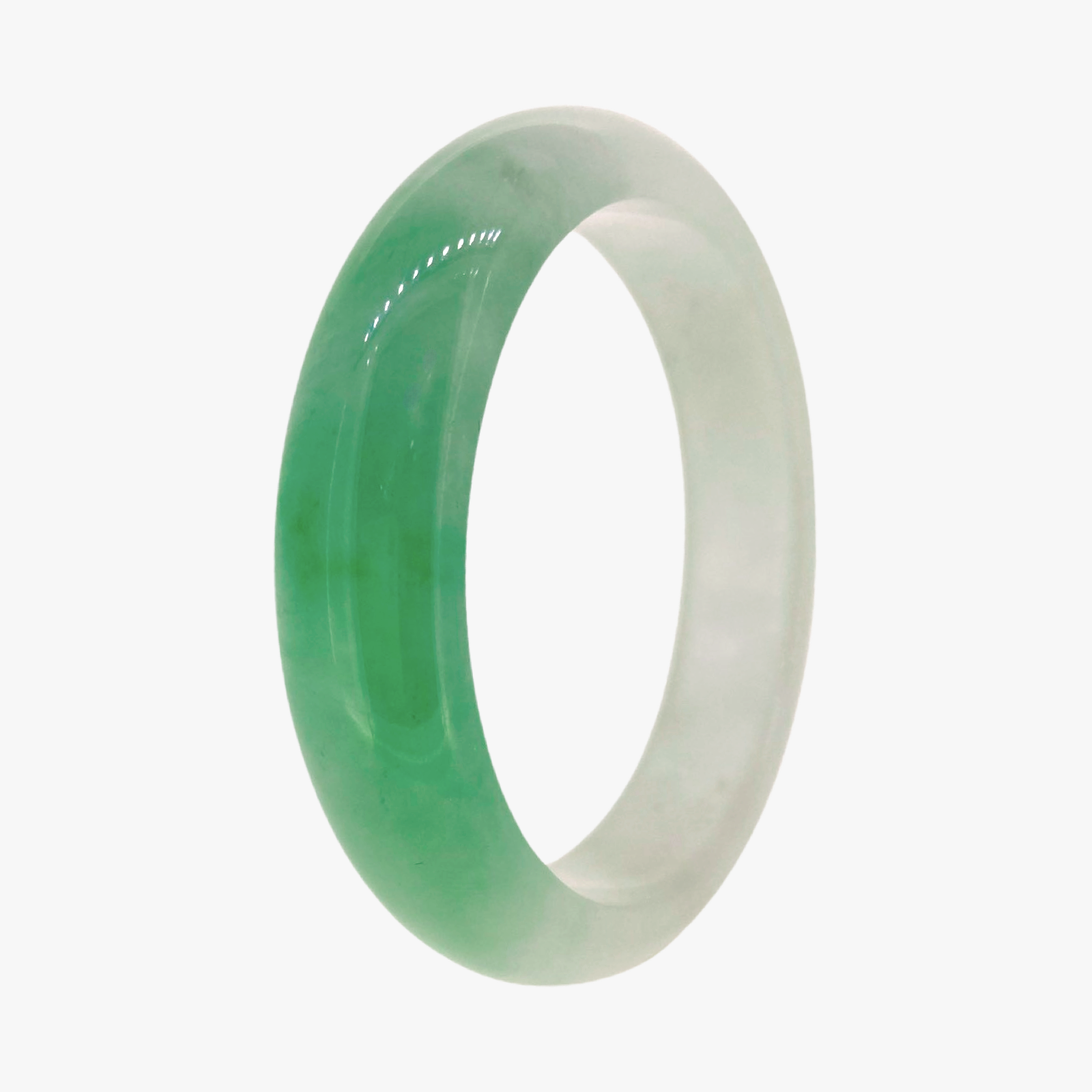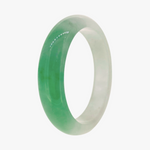 This Burmese jade bangle features a light green cloud colouring that gradients nicely into the white band. The bangle can be worn as a decorative accessory or as a symbol of good luck and prosperity, and on special occasions or as everyday jewellery.