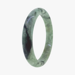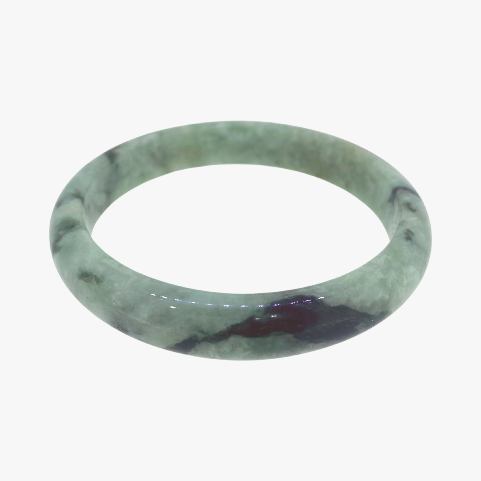 This light green Burmese jade bangle features a unique, recognisable dark green mountain-like wave that encircles the band. The bangle can be worn as a decorative accessory or as a symbol of good luck and prosperity, and on special occasions or as everyday jewellery.