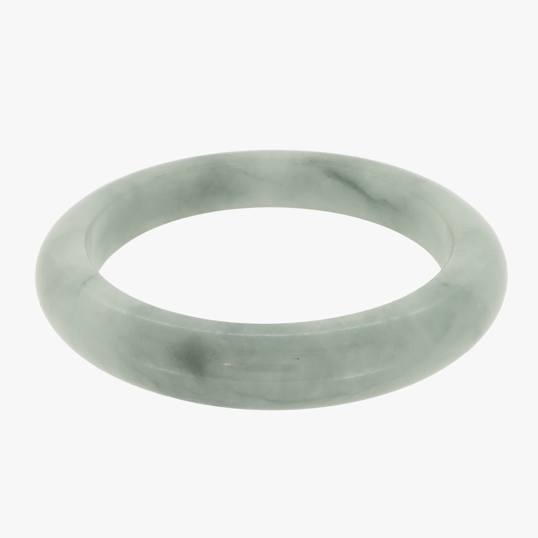 From our Grade A jade series featuring high quality, untreated natural Burmese Jade comes our Koke Jade Bangle. The bangle is a light grey-ish blue jade with dark blue-green veins throughout.