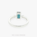 • Stones - Centre: 1.06ct Emerald Cut Natural Tourmaline | Accent: Two 0.25ct Lab Kite Diamonds, E Colour, VVS/VS Clarity.