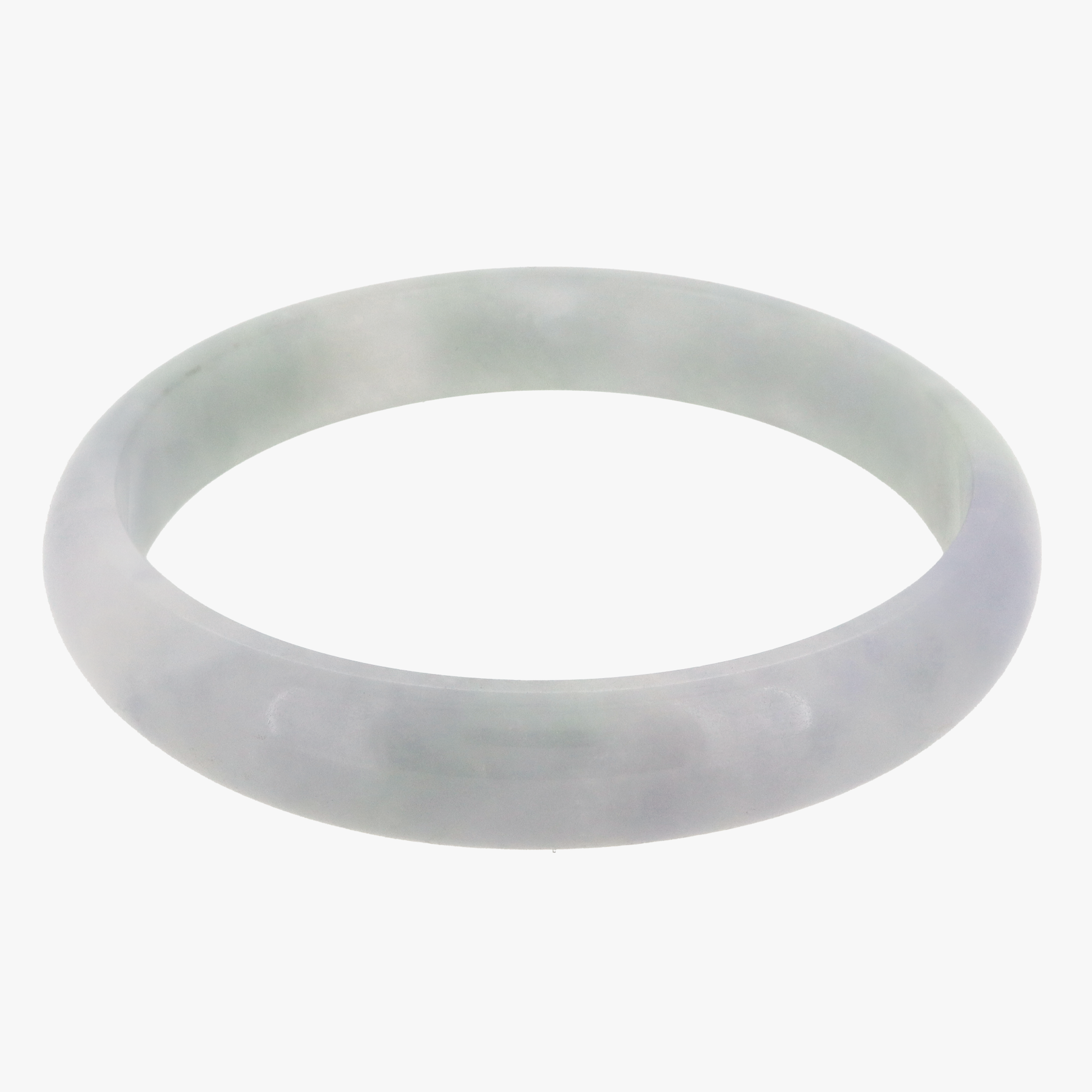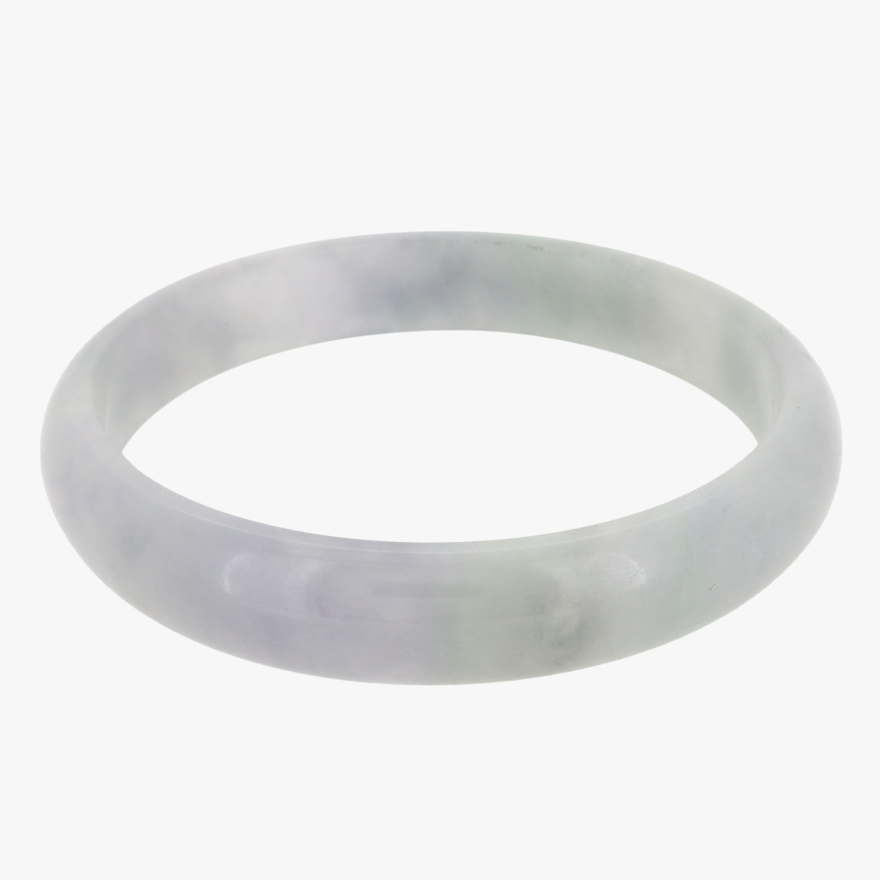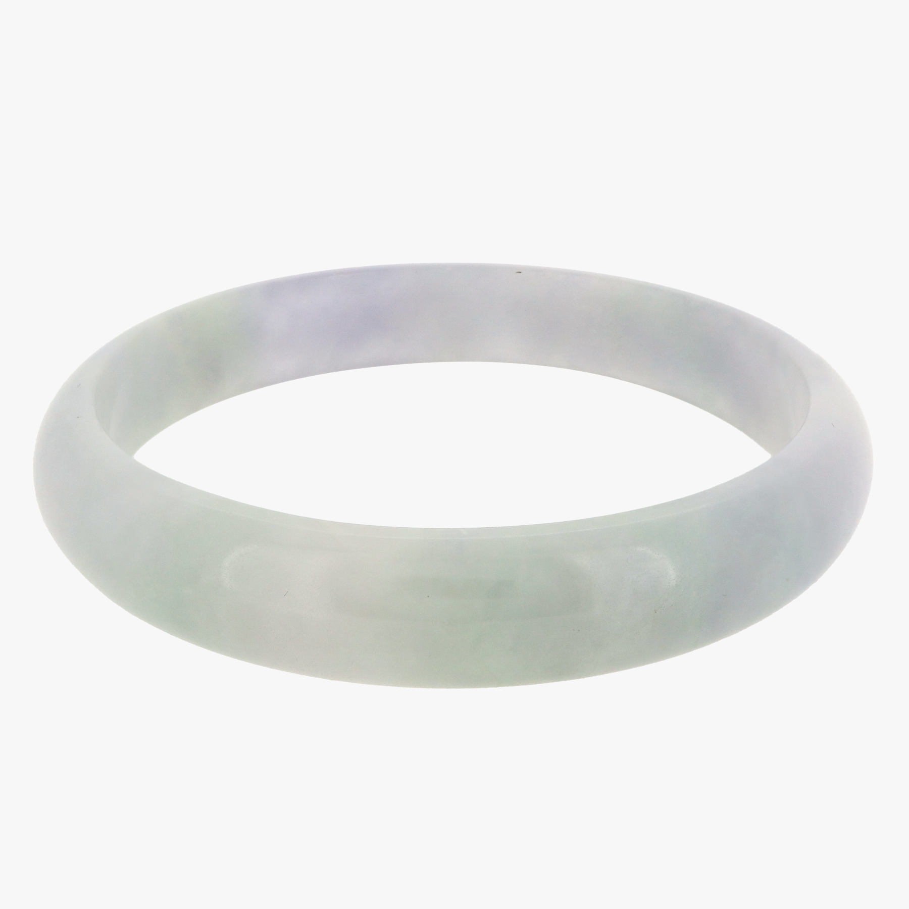 From our Grade A jade series featuring high quality, untreated natural Burmese Jade comes our Murasaki Jade Bangle. The colouring is a translucent light lavender purple with clouds of grey veins.