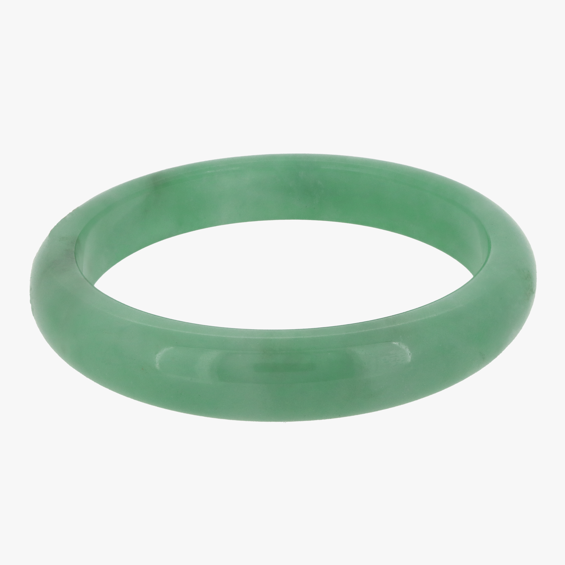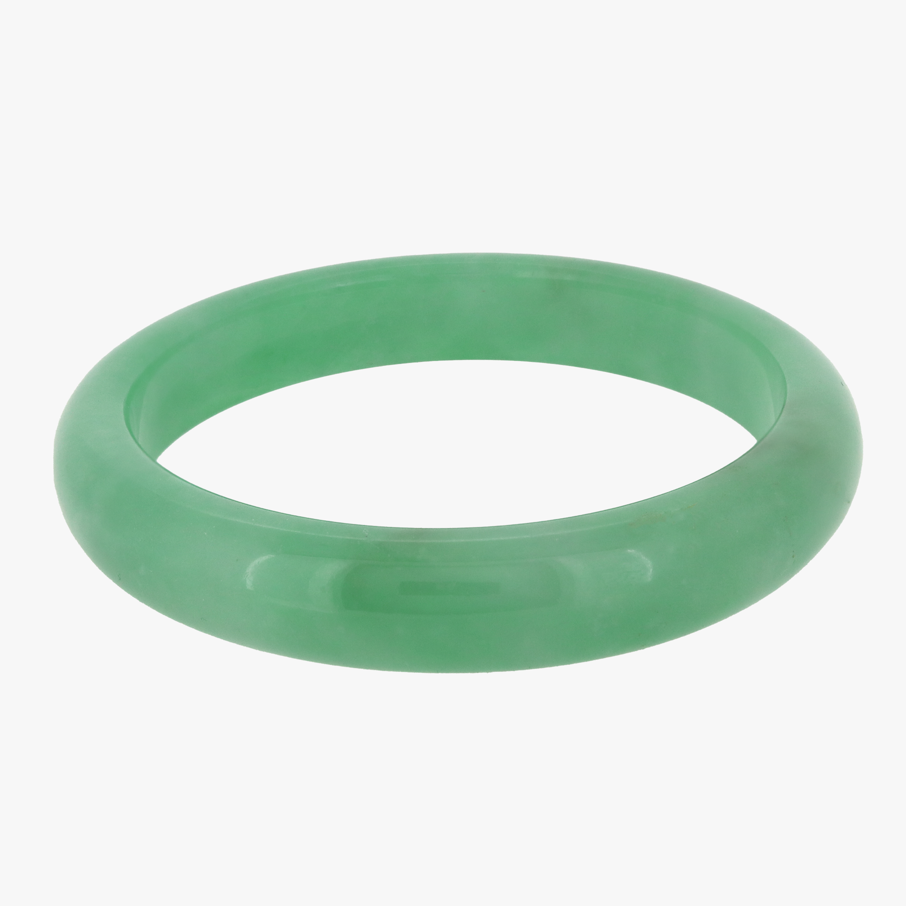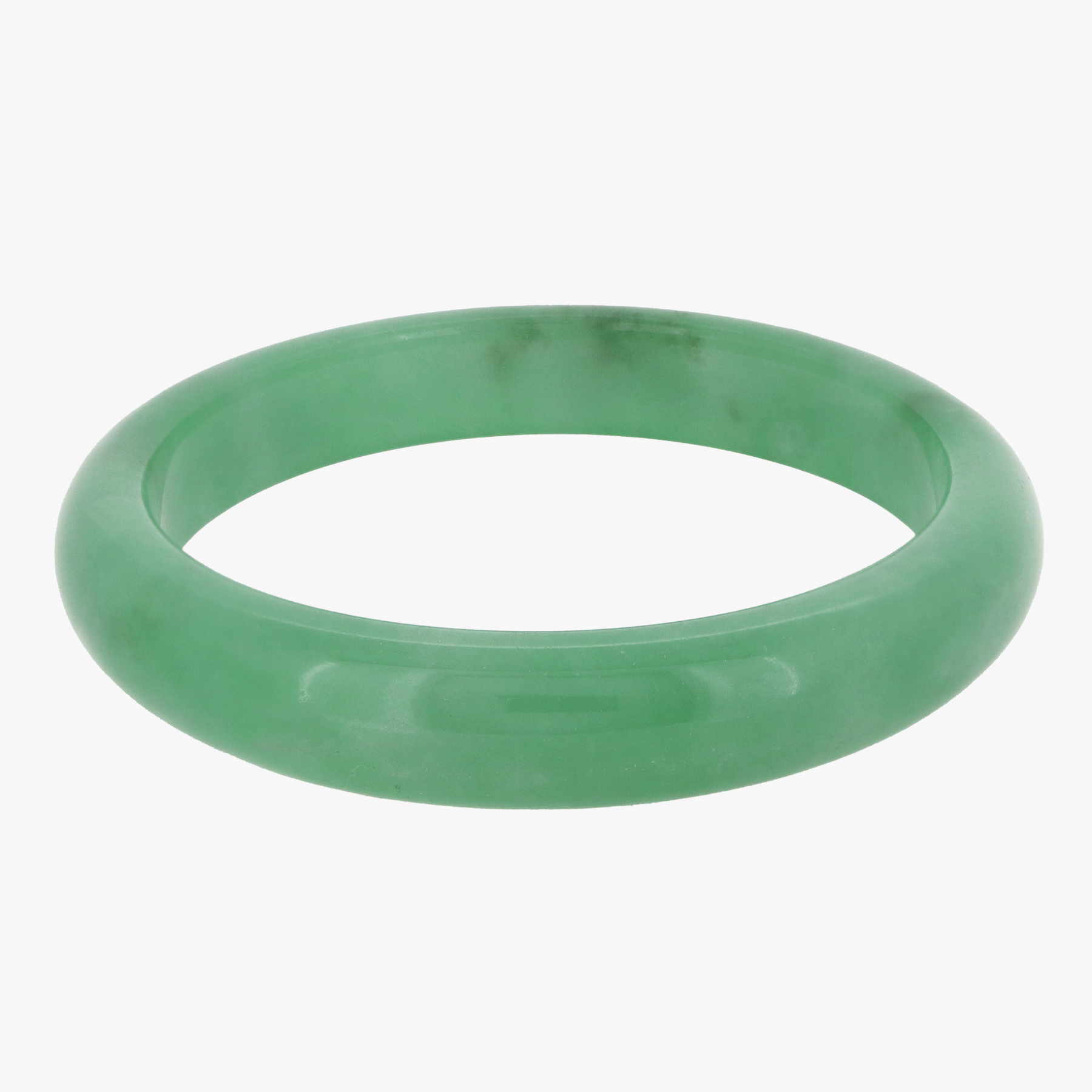 From our Grade B jade series featuring high quality, untreated natural Burmese Jade comes our Roku Jade Bangle. The bangle is a solid deep green colour with small flecks of darker green inclusions.