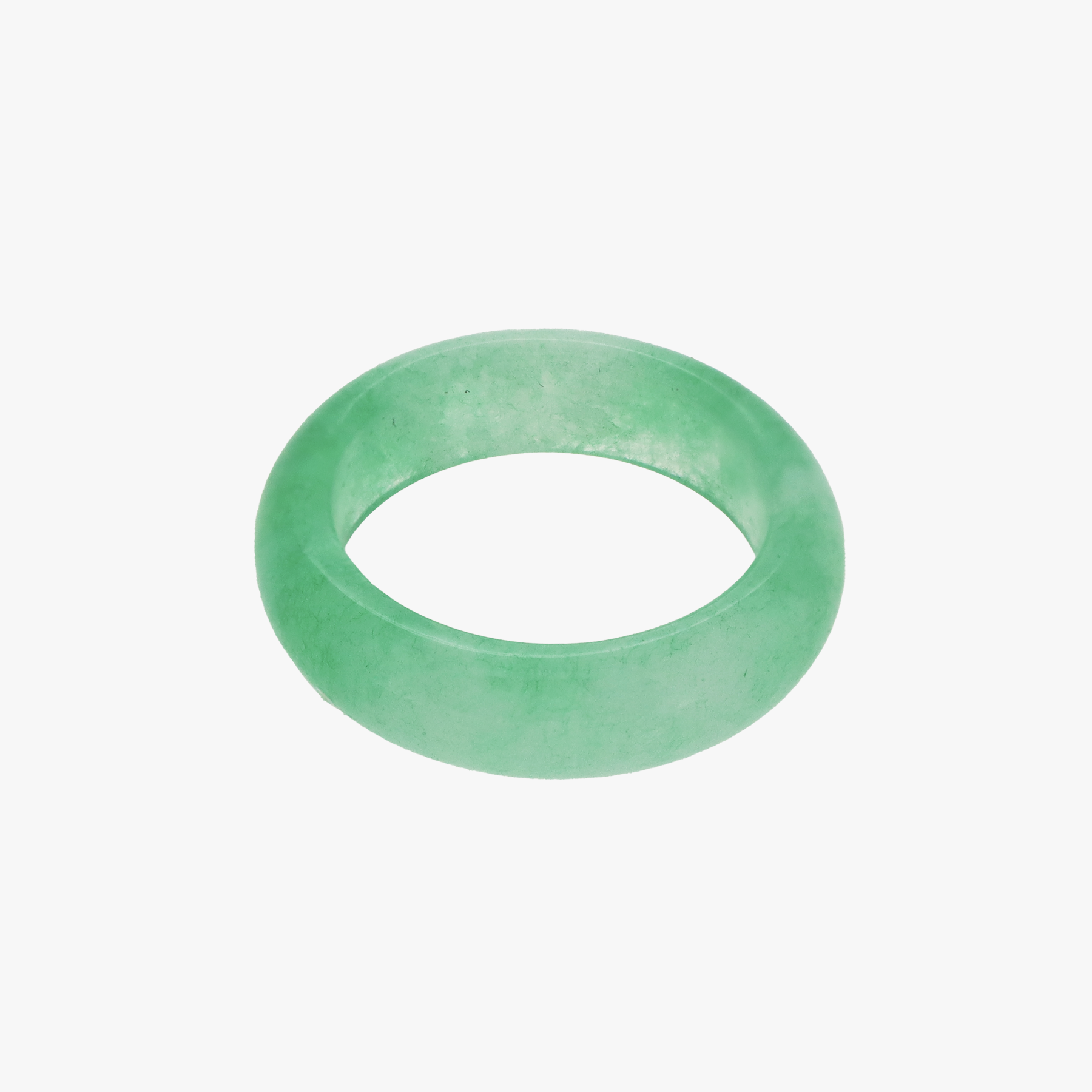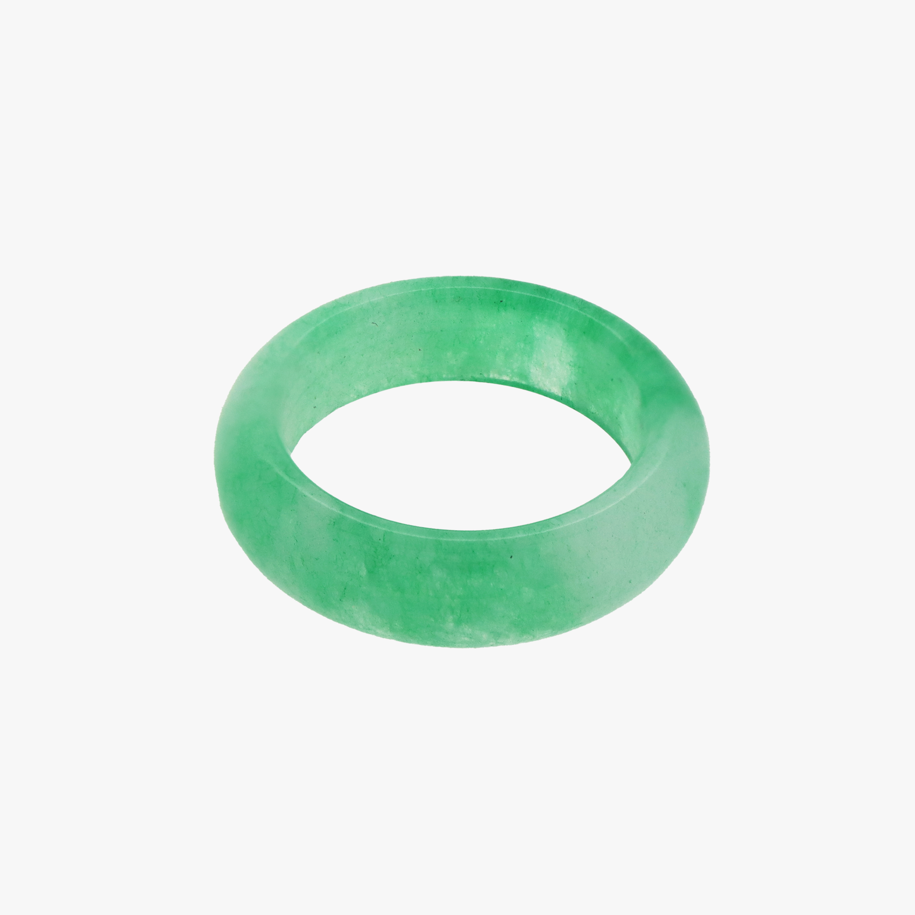 A unique, one of a kind ring made of natural Burmese jade. Our Ruri jade ring features a pleasant mix of white and green patterning.