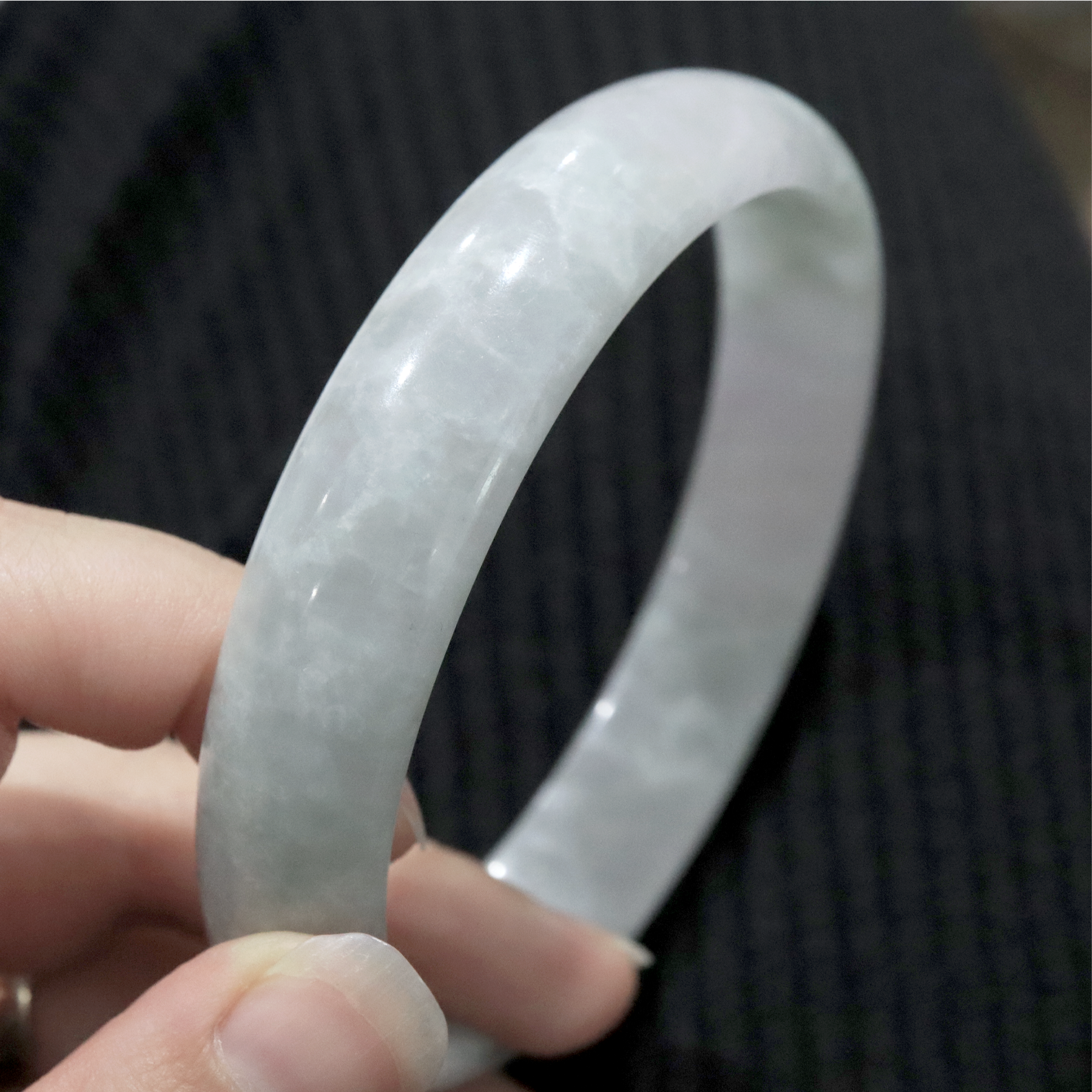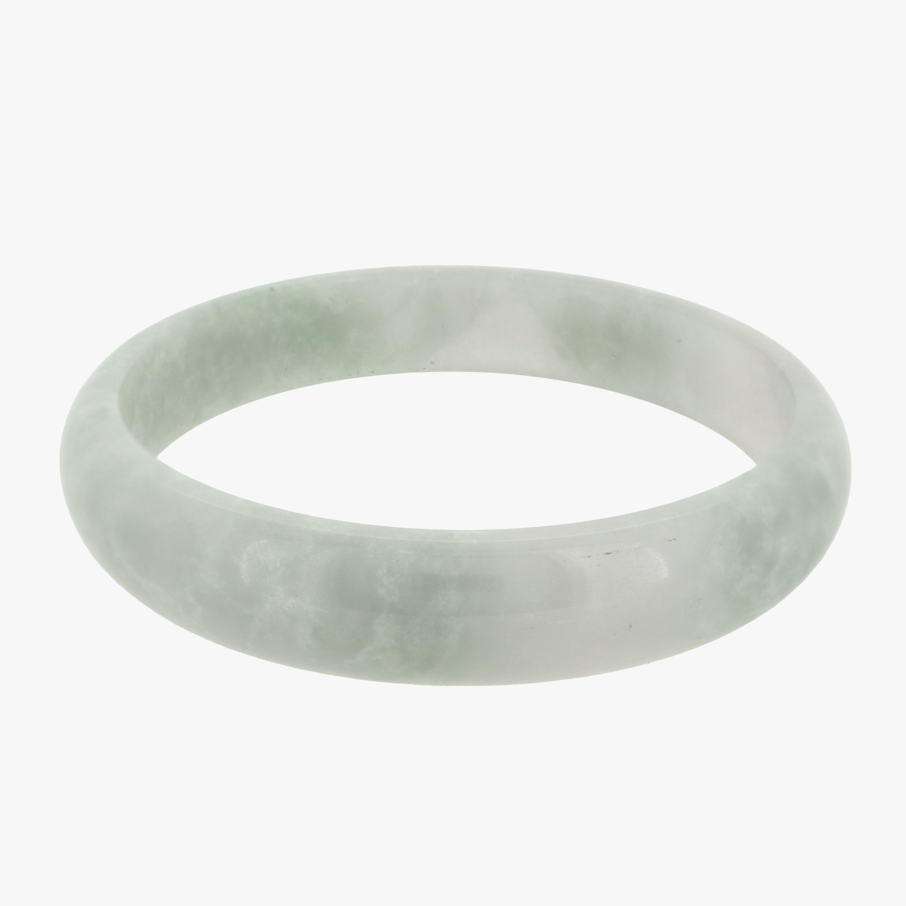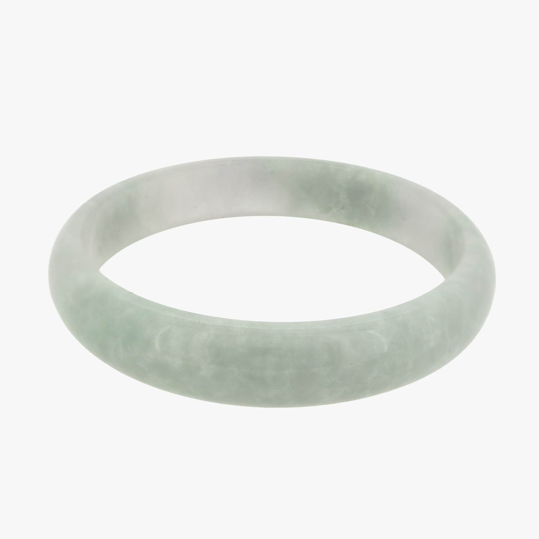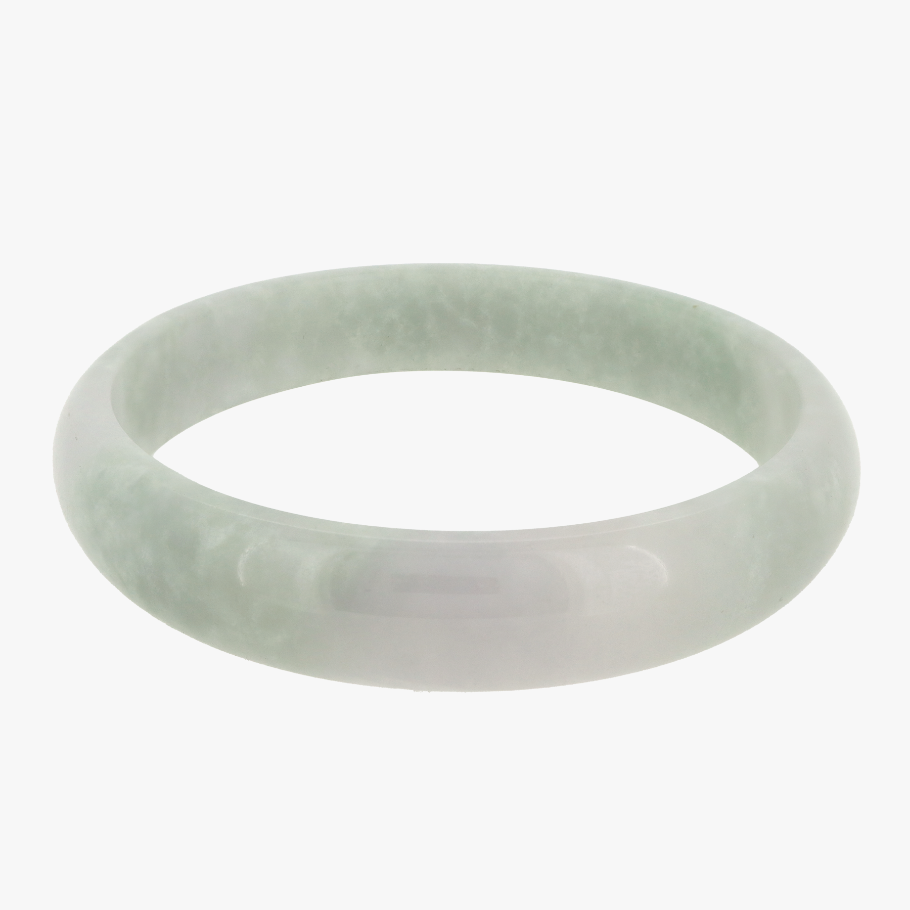 From our Grade A jade series featuring high quality, untreated natural Burmese Jade comes our Yunami Jade Bangle. The colouring is a translucent light grey with areas of a wave-patterned light desaturated green.