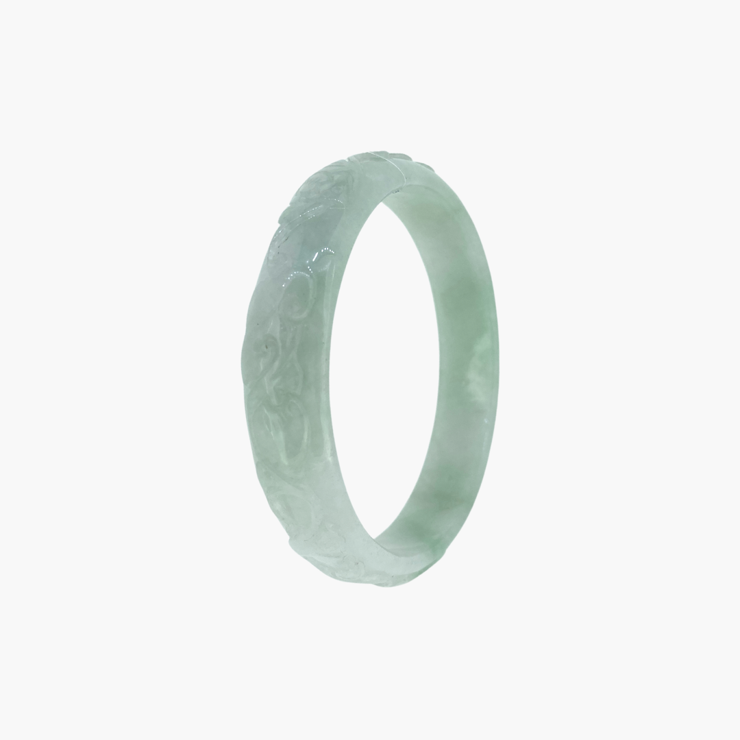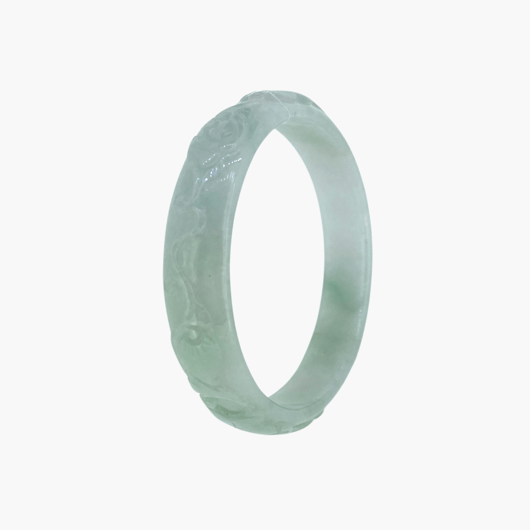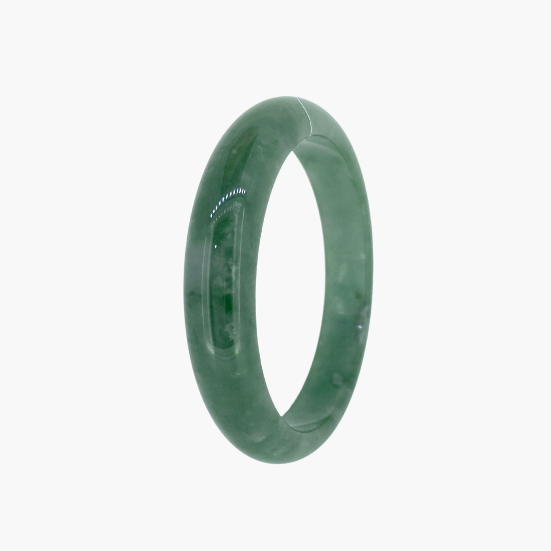 Our jade bangle collection features natural Burmese jadeite jade, with each piece being entirely unique. Every bangle is available only in the specific size listed, reflecting its one of a kind nature. Wearing a jade bangle is traditionally believed to promote balance, harmony, and protection, making it more than just a stunning accessory, but a meaningful part of your everyday wear.