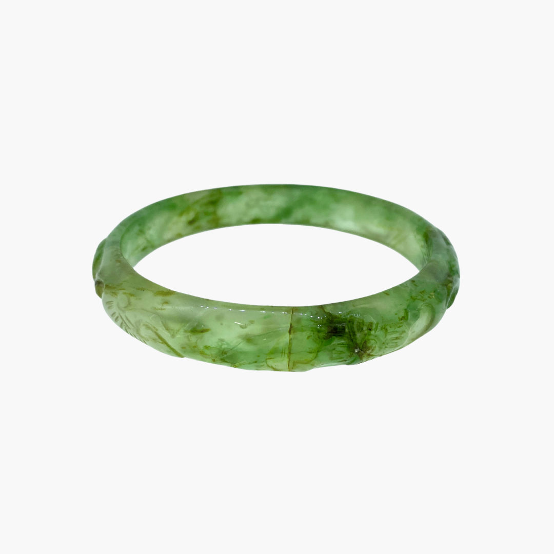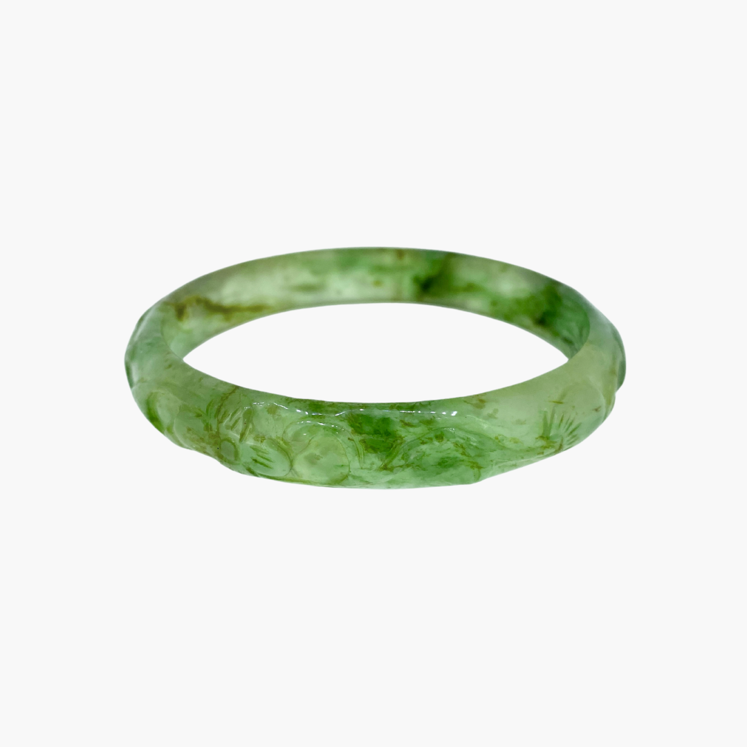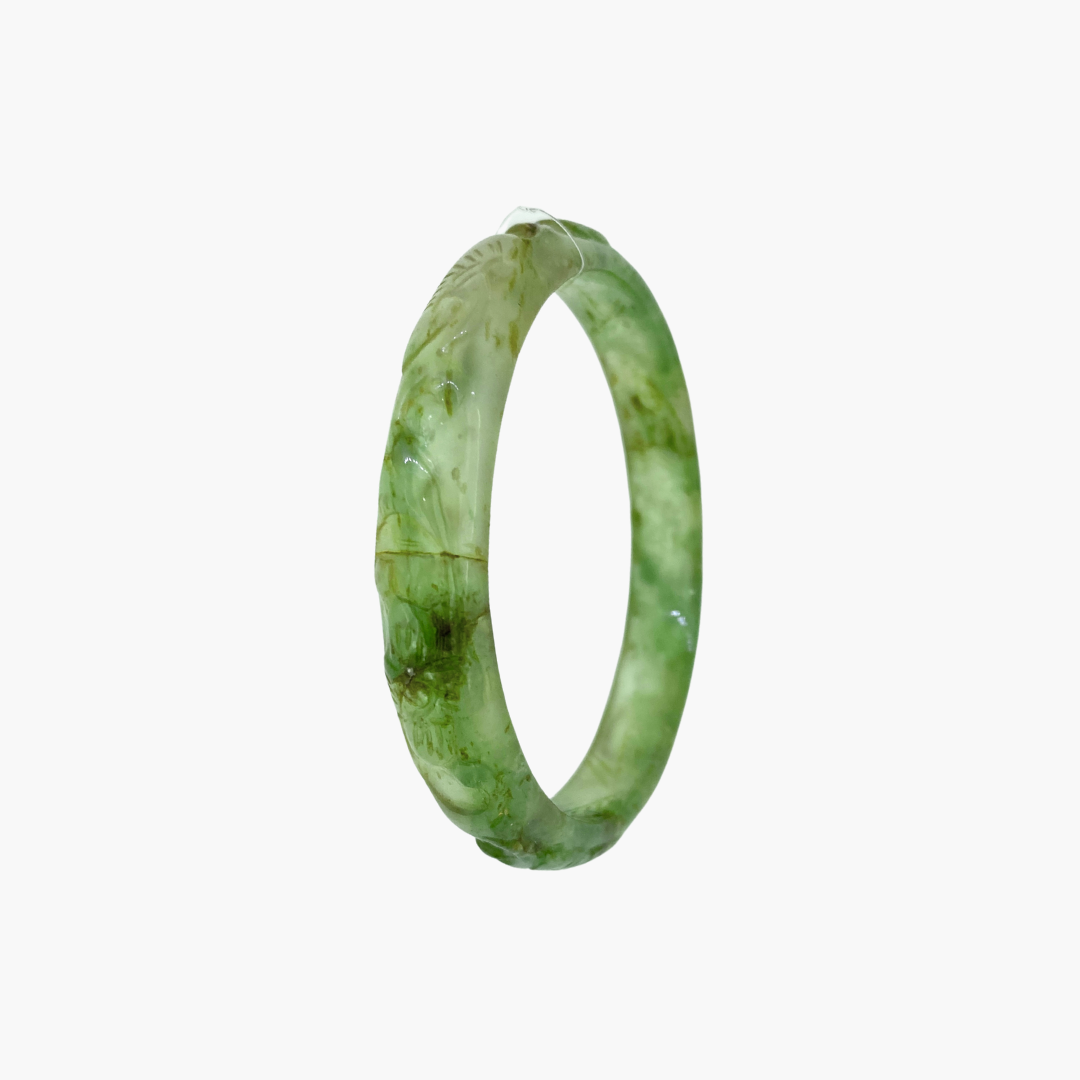 Our jade bangle collection features natural Burmese jadeite jade, with each piece being entirely unique. Every bangle is available only in the specific size listed, reflecting its one of a kind nature. Wearing a jade bangle is traditionally believed to promote balance, harmony, and protection, making it more than just a stunning accessory, but a meaningful part of your everyday wear.