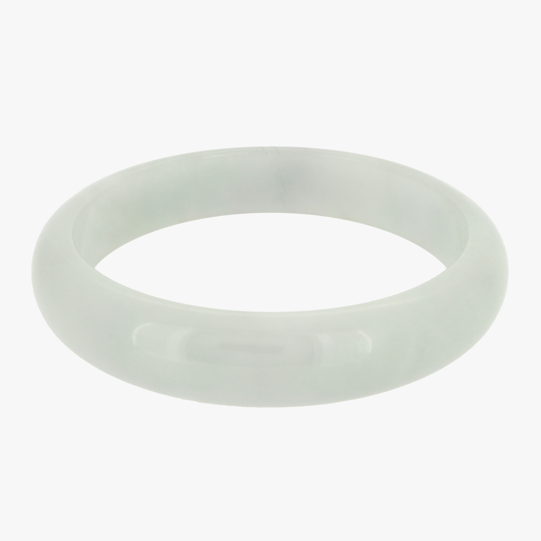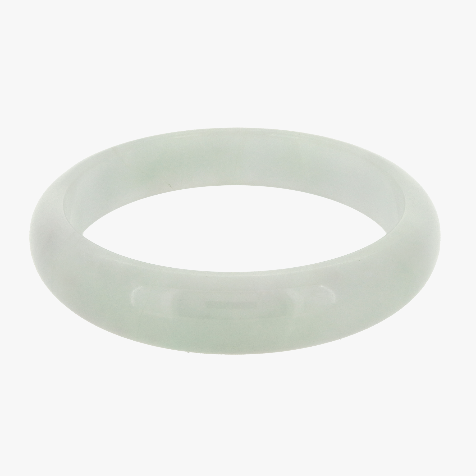 From our Grade A jade series featuring high quality, untreated natural Burmese Jade comes our Shiro Jade Bangle. The bangle is a semi-opaque light grey-ish white with faint, pale light green clouds.