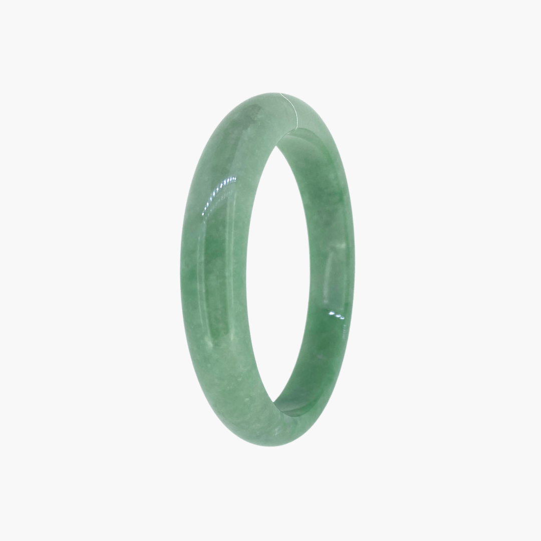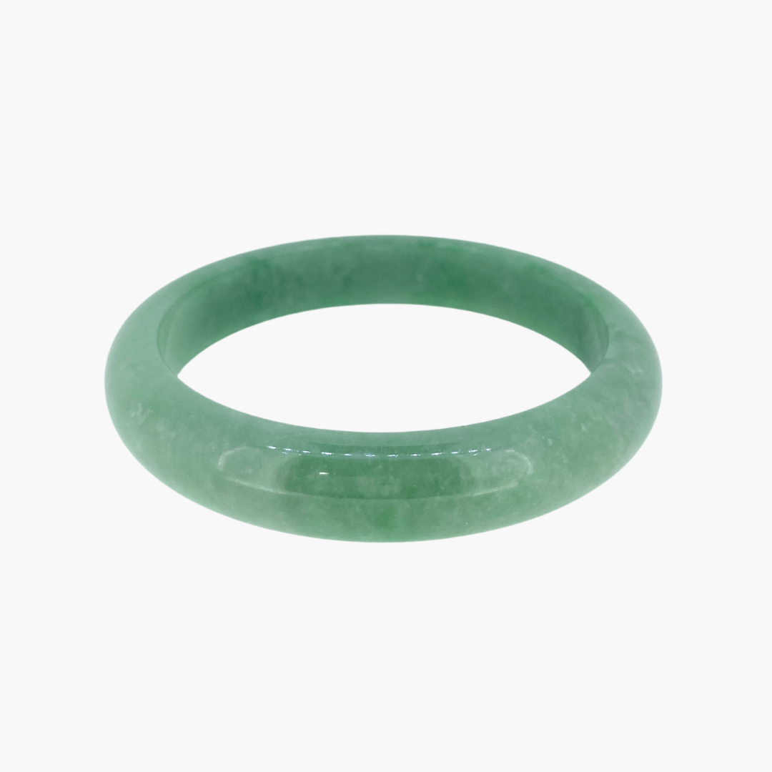 This jade bangle features a soft green tea hue, warm and gently muted in tone. The subtle colour gives the stone a calm, earthy elegance, with natural variations that add depth and character. Smoothly polished and timeless, it’s a beautifully understated piece designed for everyday wear.