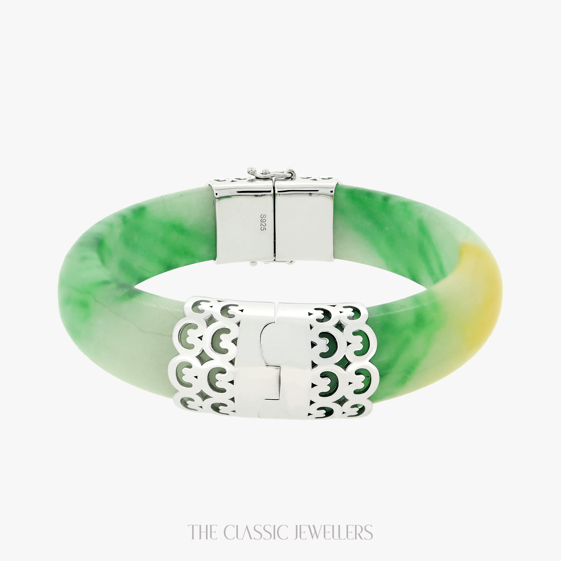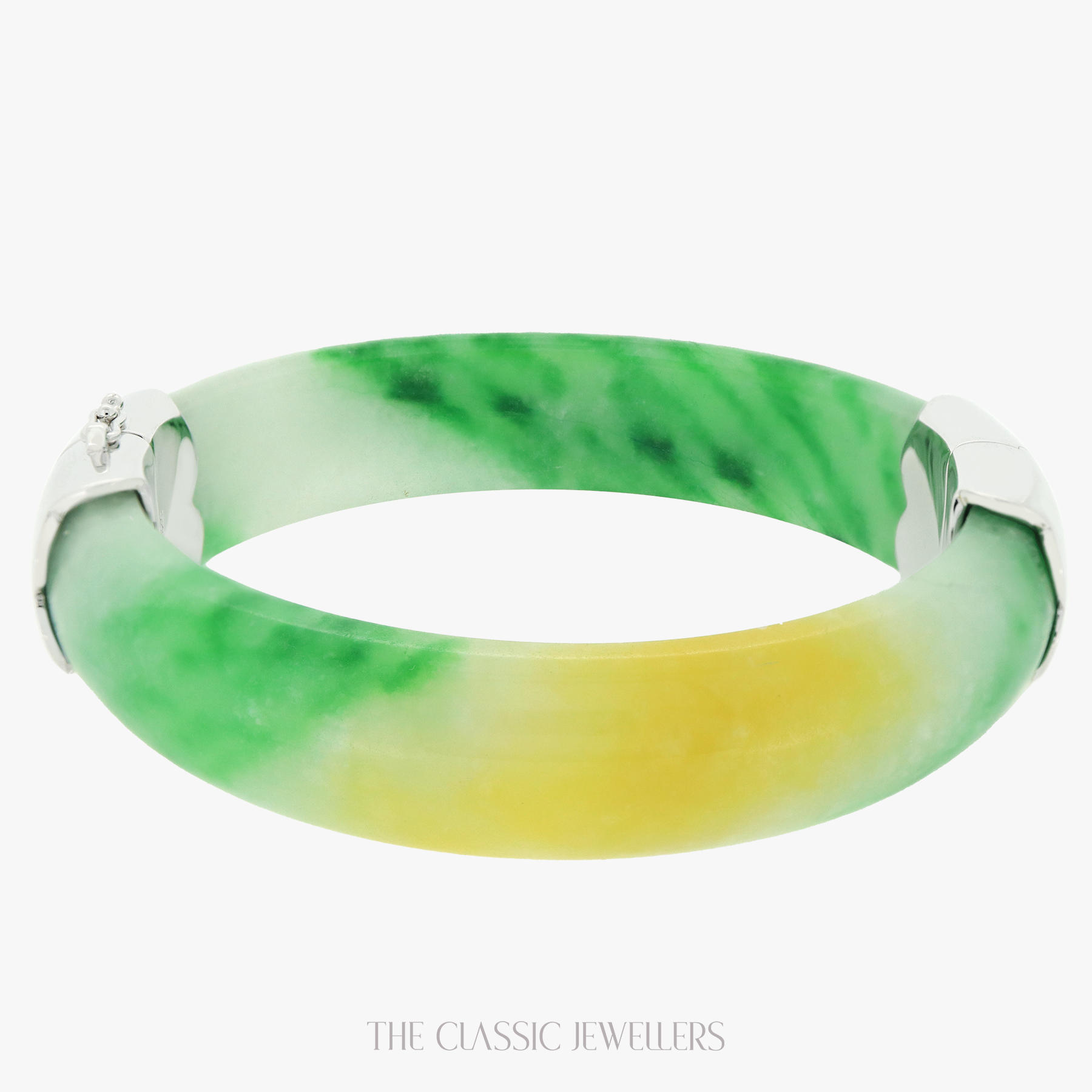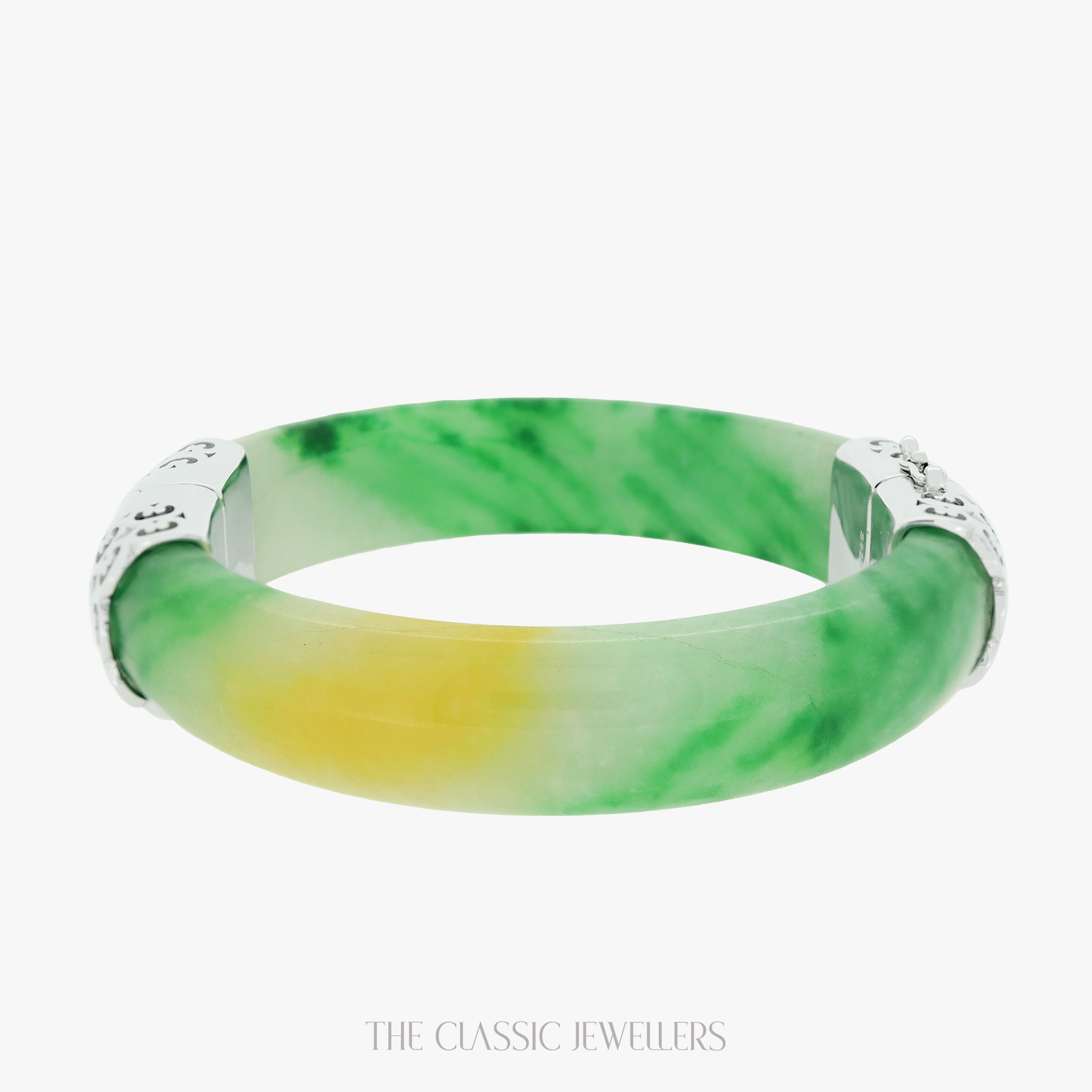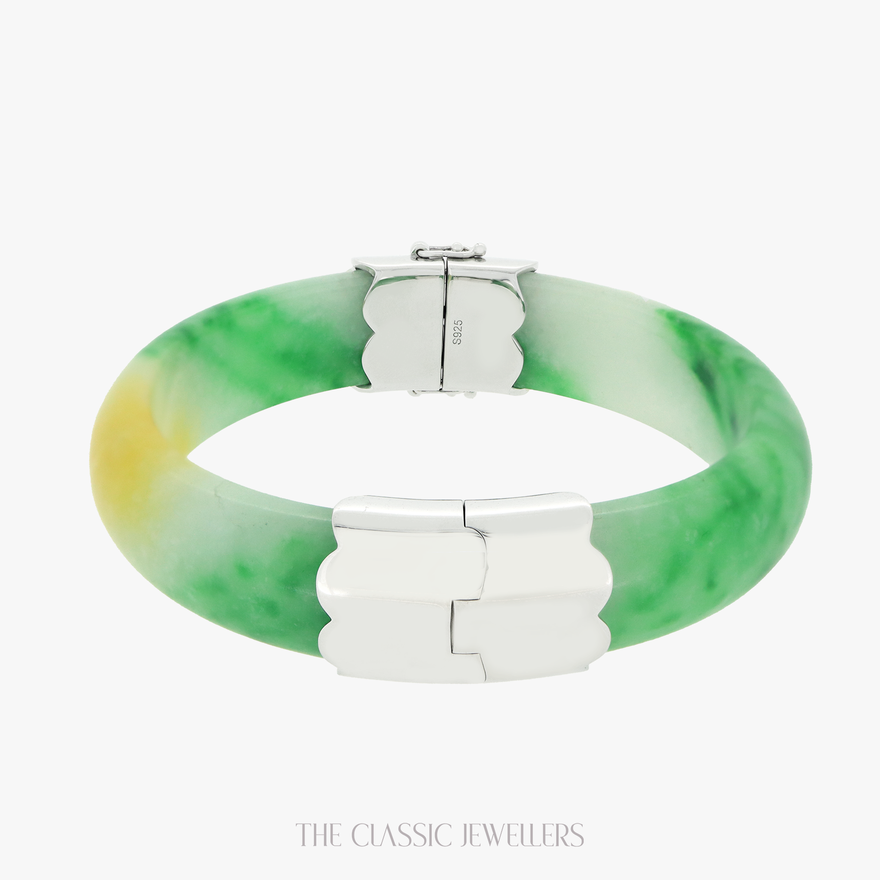 Our jade bangle collection features natural Burmese jadeite jade, with each piece being entirely unique. Every bangle is available only in the specific size listed, reflecting its one of a kind nature. Wearing a jade bangle is traditionally believed to promote balance, harmony, and protection, making it more than just a stunning accessory, but a meaningful part of your everyday wear.