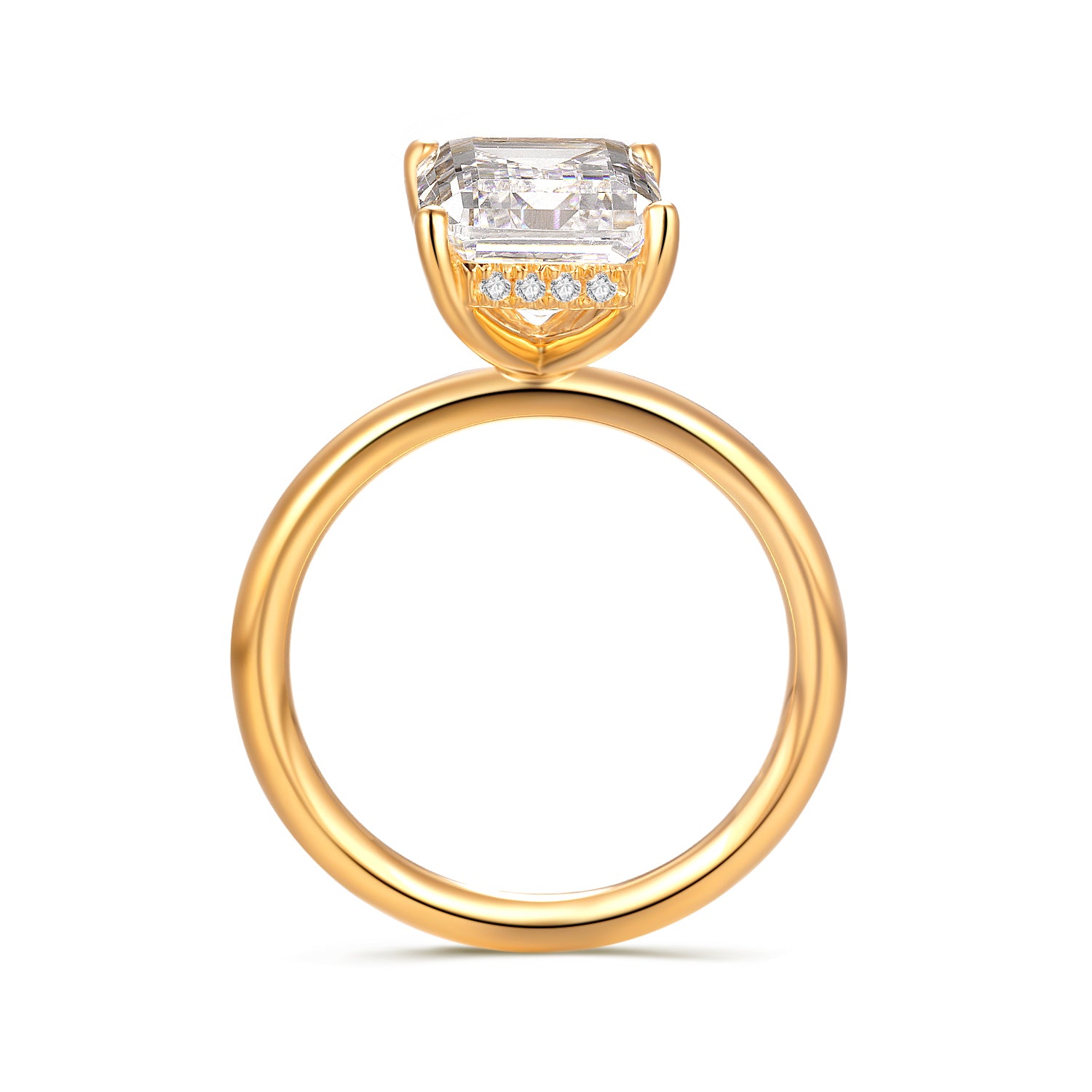 Celebrate timeless elegance with our Bella solitaire emerald lab-grown diamond engagement ring. Featuring a striking emerald-cut centre stone and a refined double claw setting, this ring exudes sophistication. The hidden halo detail adds a subtle touch of brilliance, while the round wire band offers a classic, graceful finish. A truly captivating piece designed to make a statement.