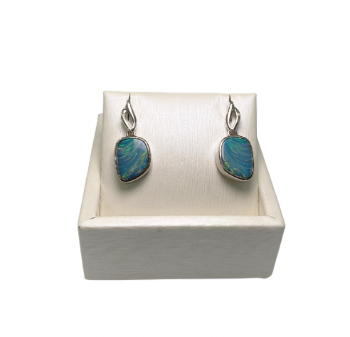 Discover the mesmerising beauty of these sterling silver doublet opal earrings from Lucie Lyn. Each piece showcases the enchanting play of colour that makes opal so captivating, with the doublet construction offering durability and brilliance. The lustrous silver setting complements the stone's iridescent fire, creating an elegant accessory that catches light with every movement. Perfect for those who appreciate timeless sophistication with a touch of natural wonder. A versatile addition to any jewellery collection.