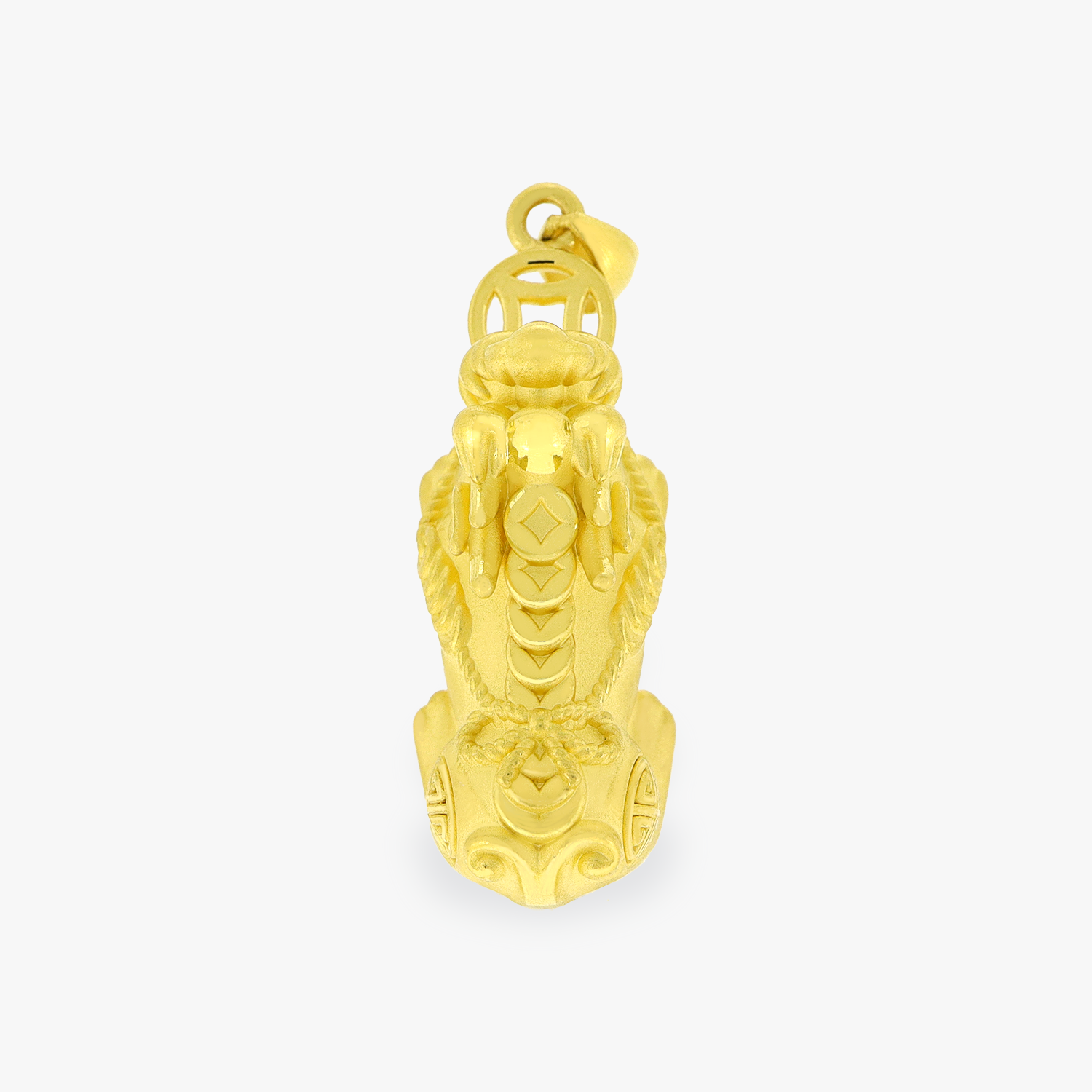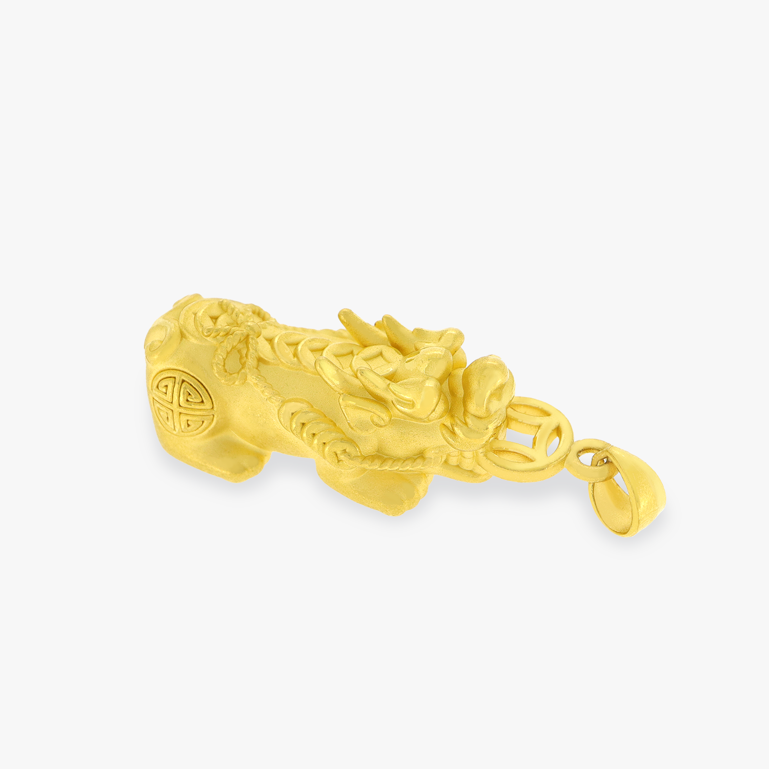 This 24k Gold Pixiu pendant is 99.99% pure gold. The pendant features a detailed and intricate design of the mythical Chinese creature Pixiu, which is said to have the power to bring wealth and good luck.