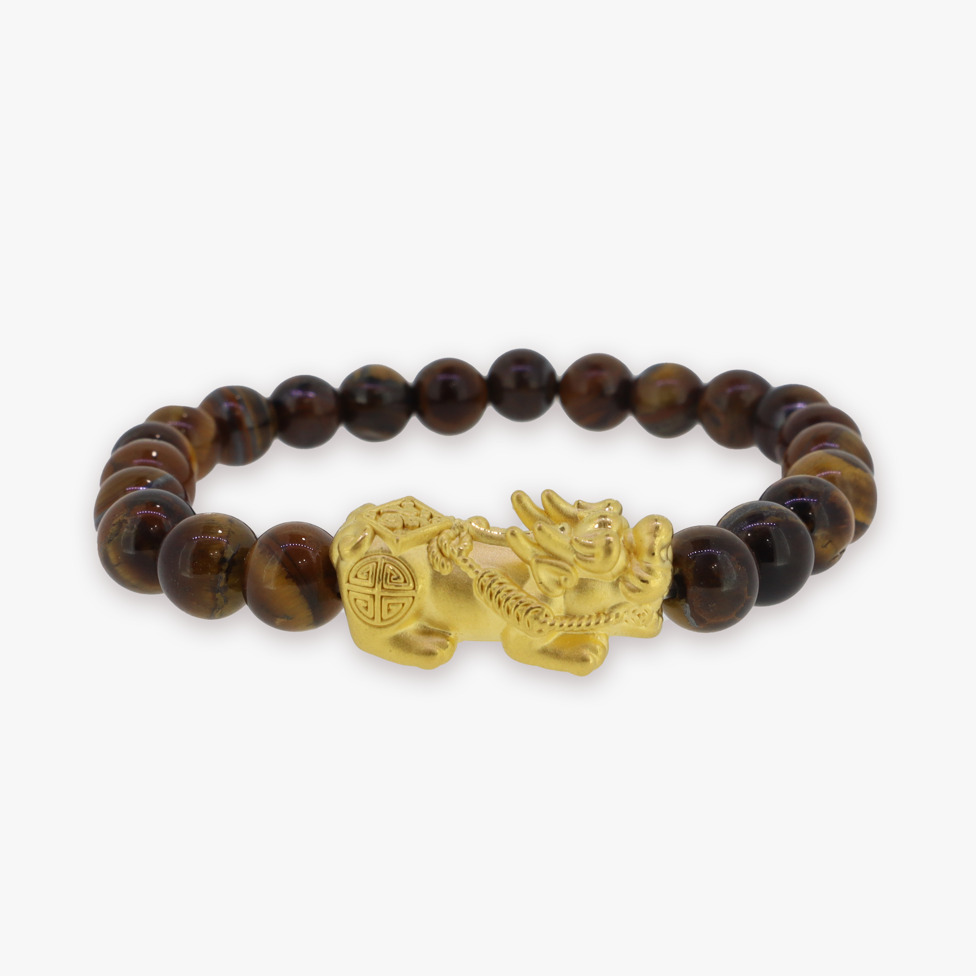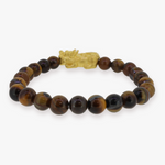 24K Yellow Gold Pixiu of Good Luck | Tiger Eye Bracelet