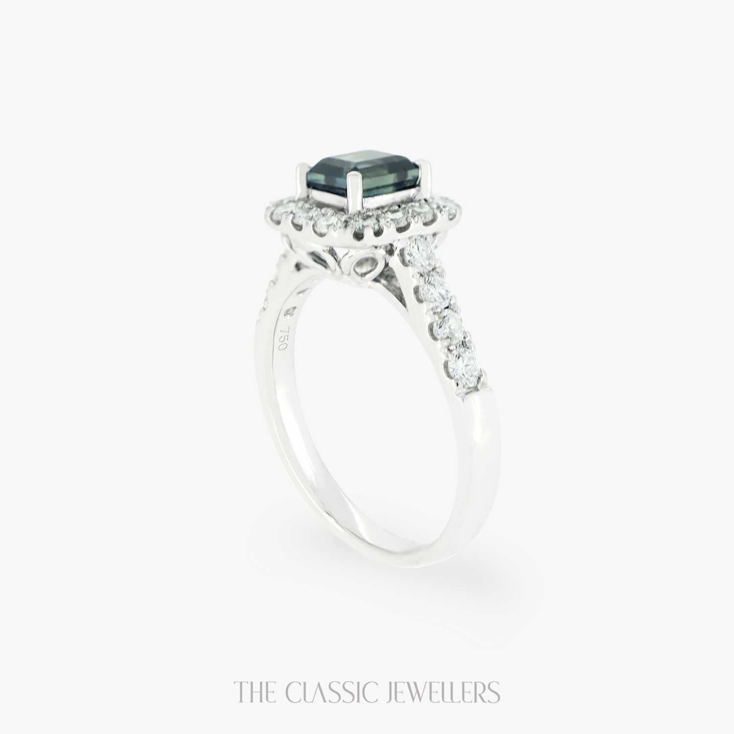 • Stones - 1.6ct Emerald Cut Natural Parti Sapphire (5.18X4.72mm) | 22 Brilliant Round Natural Diamonds, G/H Colour, SI Clarity, 1.62TCW