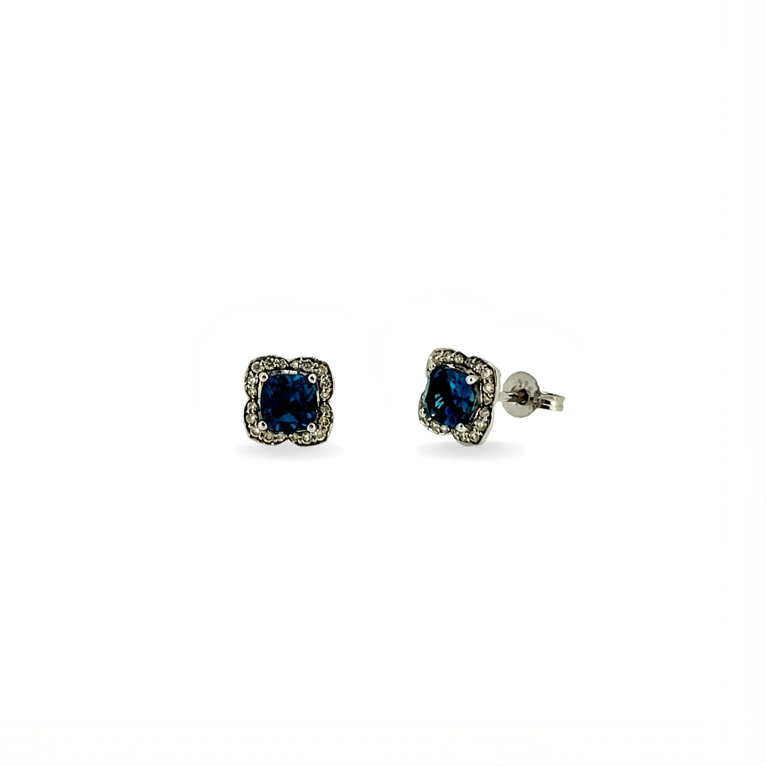 Adria | 9ct White Gold London Blue Topaz with Diamonds Studs