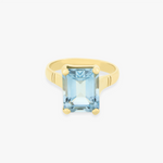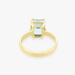 Indulge in our stunning 9K Yellow Gold Blue Topaz Ring. Featuring a stunning emerald cut natural blue topaz, elegantly set in 4 claw basket setting that highlights the bright blue hue of the Topaz.