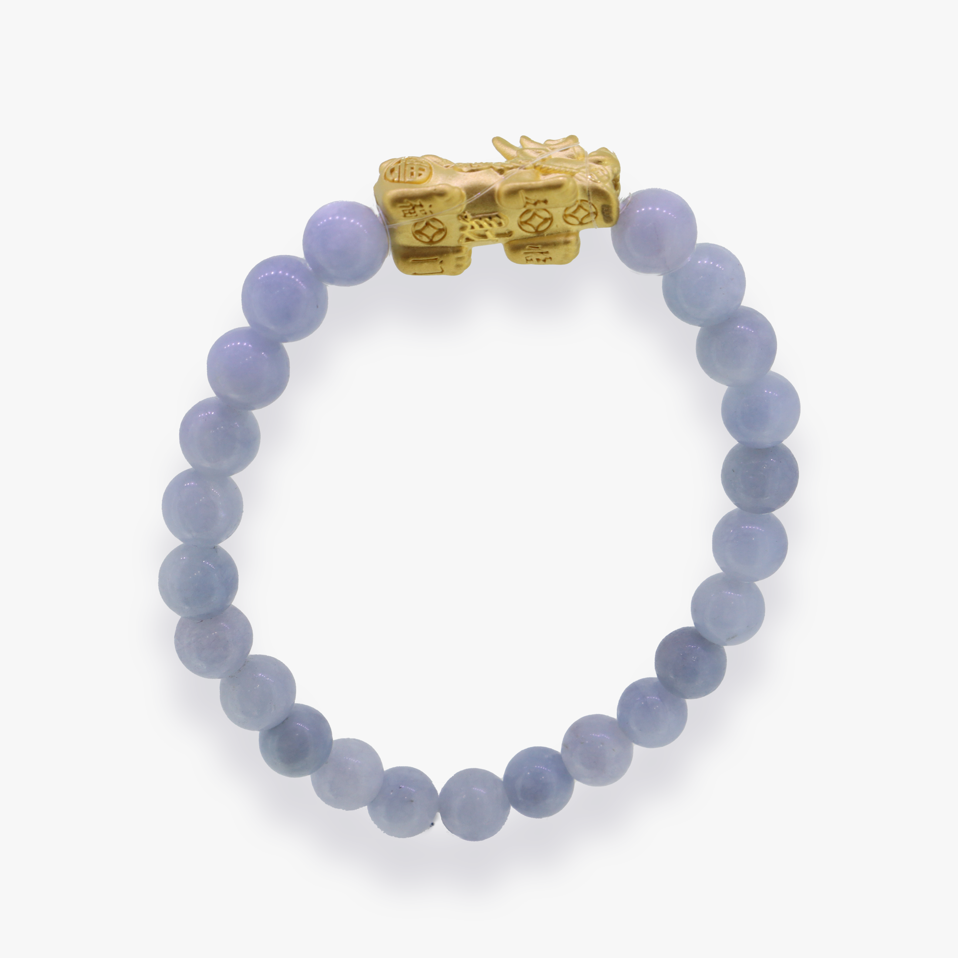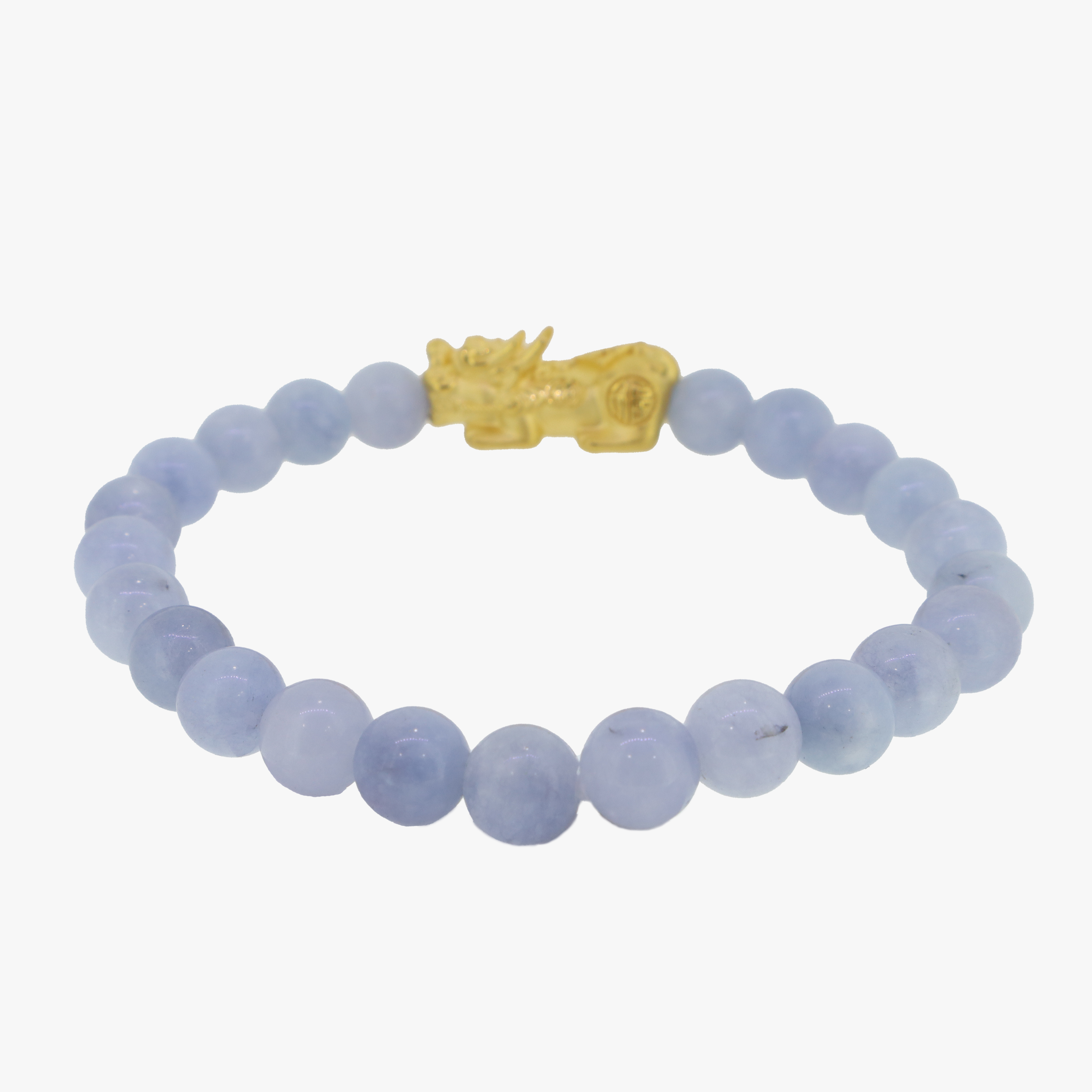 24K Yellow Gold Pixiu | Natural Aquamarine Beaded Bracelet