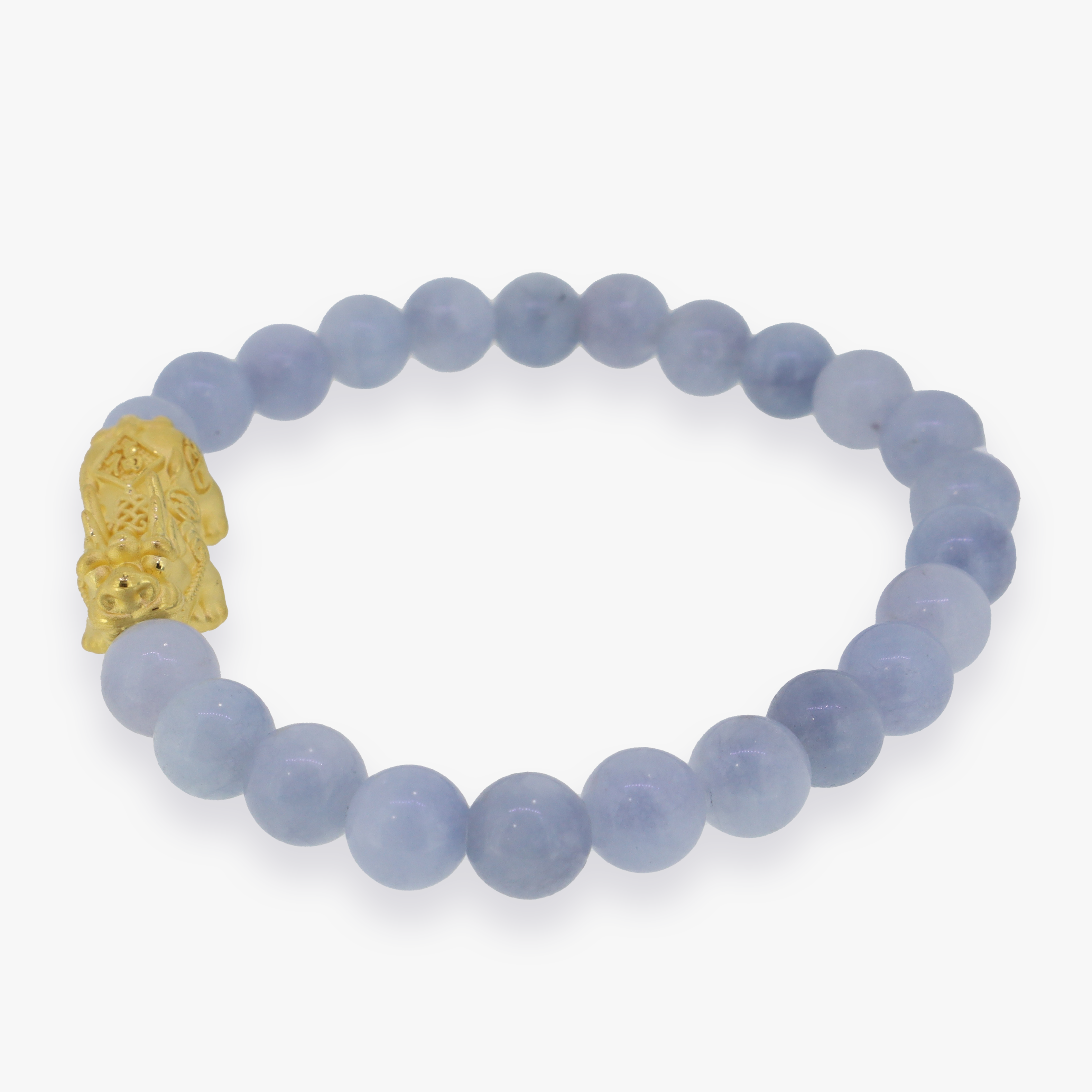 24K Yellow Gold Pixiu | White Quartz Bracelet