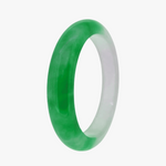 This jade Burmese bangle has a half green and half white jade band, with specks of hazy white clouds throughout. This bangle is bound to be a great statement piece with any outfit. The bangle can be worn as a decorative accessory or as a symbol of good luck and prosperity, and on special occasions or as everyday jewellery.