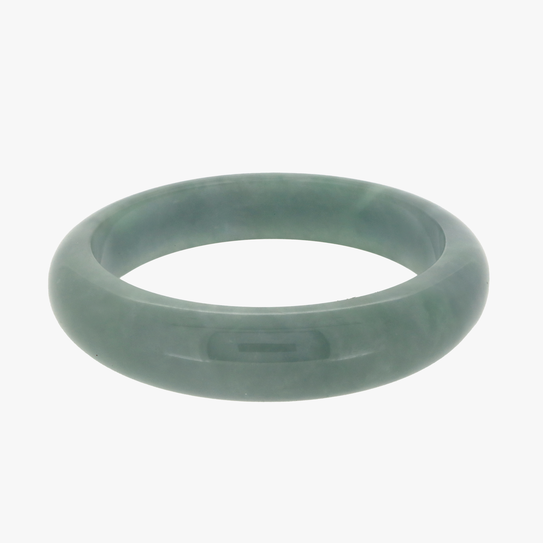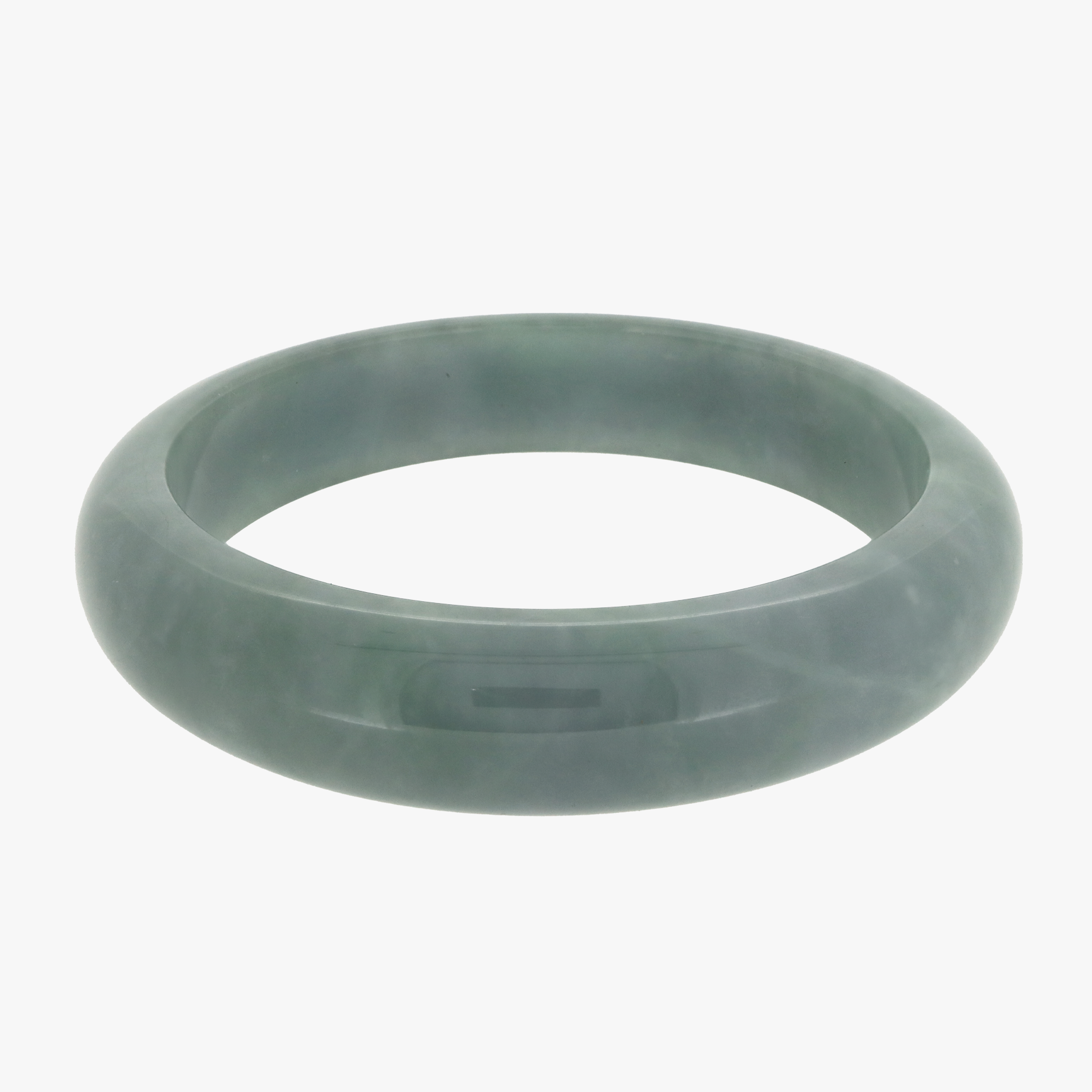 From our Grade A jade series featuring high quality, untreated natural Burmese Jade comes our Maruishi Jade Bangle. The colouring is a steady blue grey jade with light veins of white.