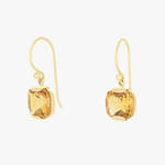 9K YG Drop Earring with Sq Cushion Cut Natural Citrine 9x9mm, C8224